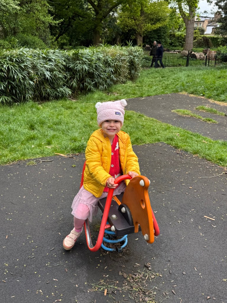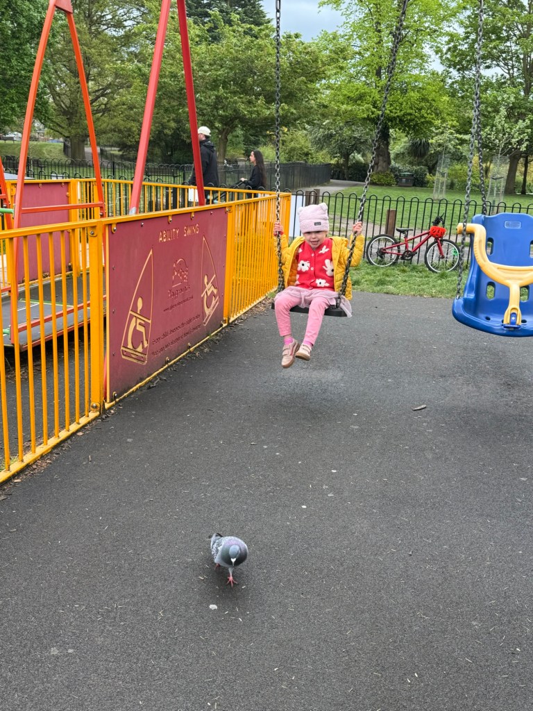 We walked onwards to the park that I used to go to at her exact age. Again, muscle memory kicked in and I found myself able to navigate it without my map. She got some energy out while Nick and I complained about the cold. At one point she saw a pigeon and yelled “What IS that bird!!!?!” We probably didn’t need to fly over an ocean to begin the expansion of her little brain but at least it has started.