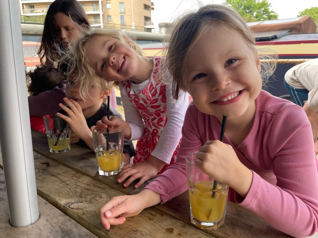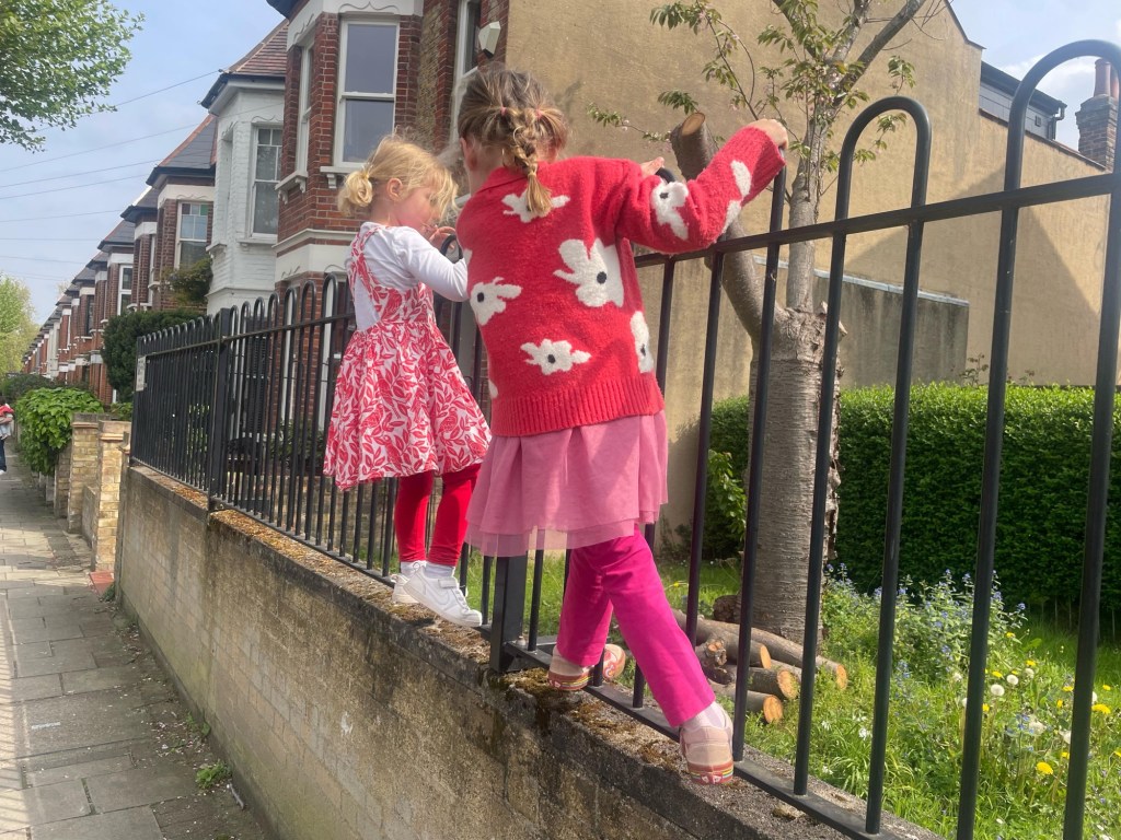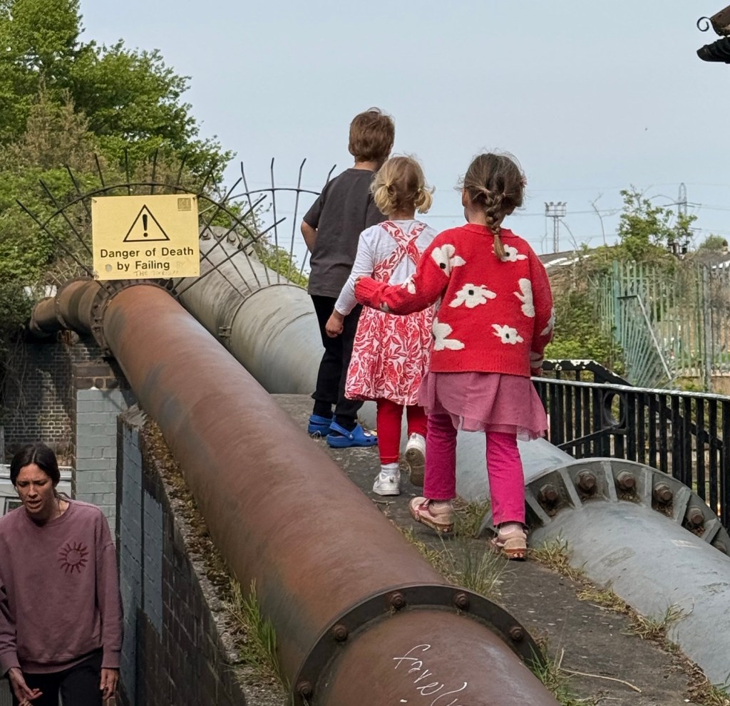 After the tea party and some tv time so the adults could talk, we walked to the park to run off the sugar. We ended up at a pub, as I have most days this week, and had a pint while the kids downed their own pints (juice) and played while narrowly escaping falling to their deaths.