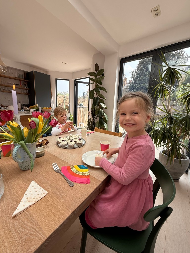 The full days and lack of bedtime started to catch up with Millie today and she woke up seeming tired. But we had big plans with family friends Alice and Joe and their kids… a real English tea party! The promise of little cakes and new friends kept her energy up on the walk to the train.