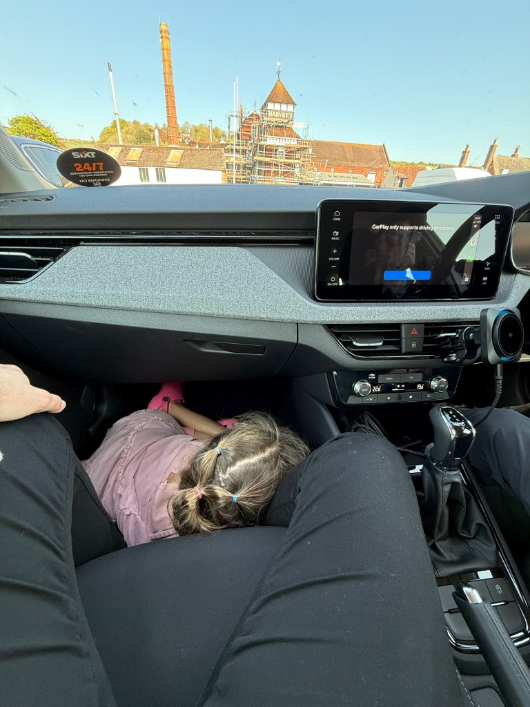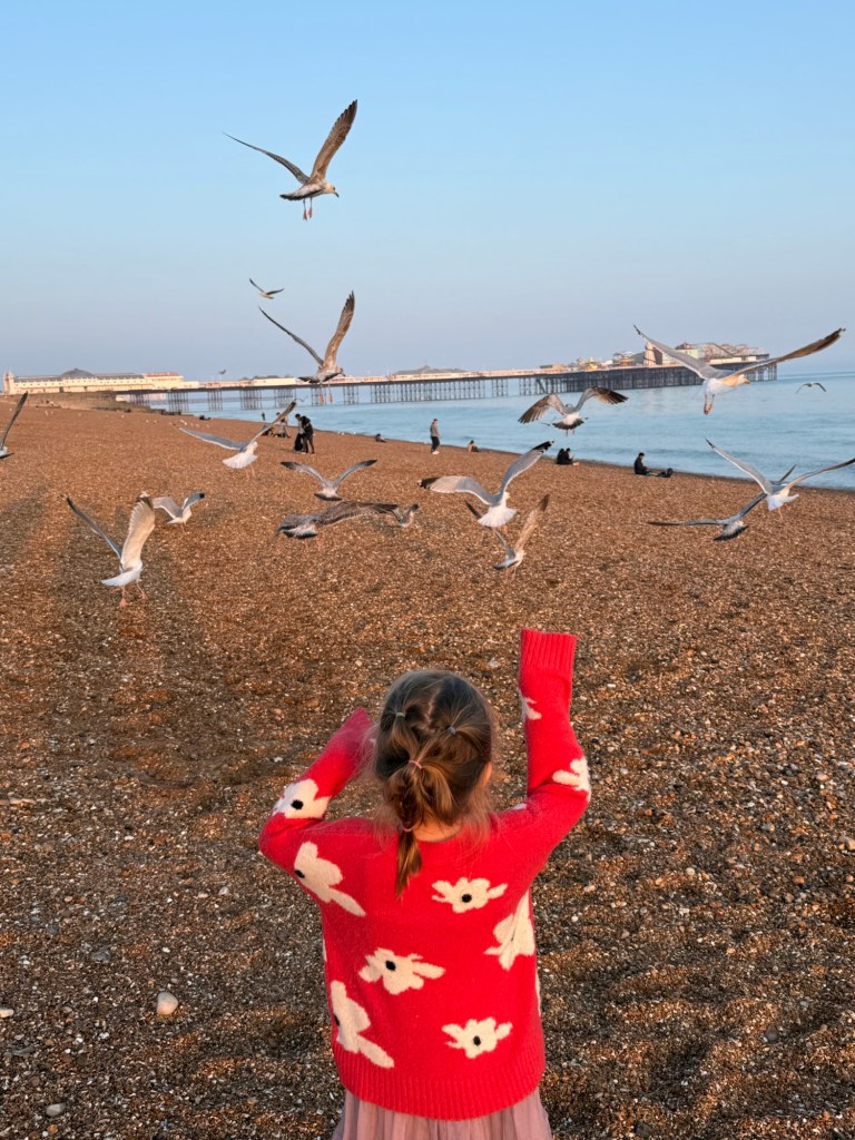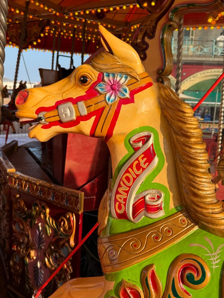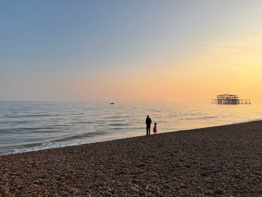 We then drove the last 20 minutes to Brighton, checked into our hotel, and walked along the shore to get dinner. Millie and I rode another carousel (her new favorite thing) and I cracked myself up by telling her to “show dad your middle finger” every time we went around. She had no idea what she was doing.