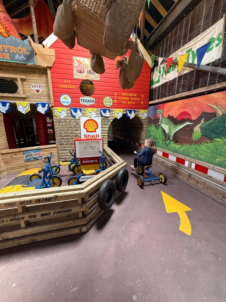 The whole place had unnecessary sound design. As you walked through the caves there was a badly-acted radio play of loud voices reenacting the original cavers’ experience. The cave known has Cathedral cave had very loud choral music playing, at one point it was literally playing the wedding processional song. The fake dinosaurs had fake dinosaur sounds. Even the indoor racetrack-themed playground had fake racetrack sounds. What could have been a really peaceful afternoon felt like sensory overload, especially since we were already feeling sensitive from the morning.