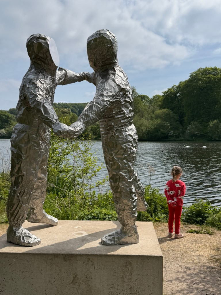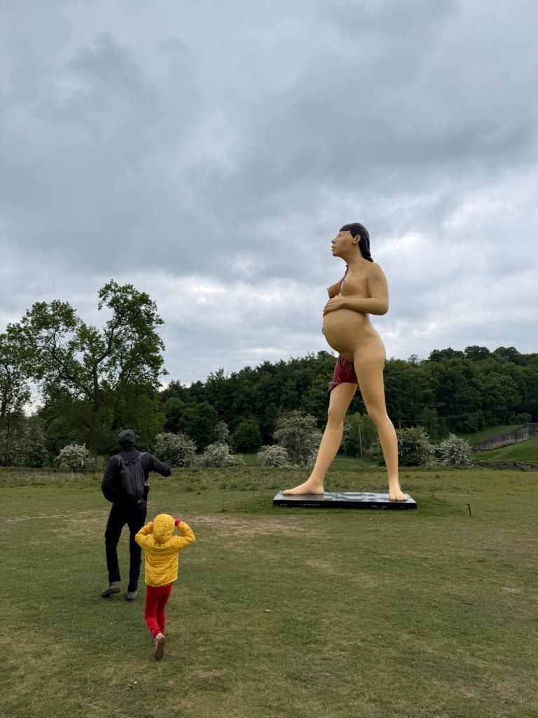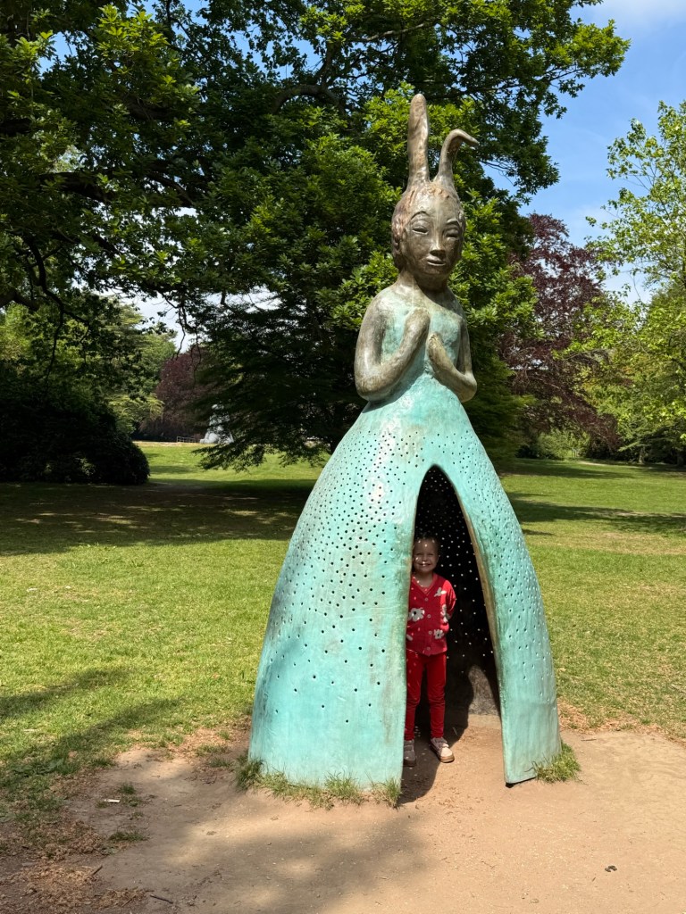 We walked alongside the lake and came upon one of Millie’s favorites of the day, Damien Hirst’s Virgin Mother. Is anyone surprised that she loved this?