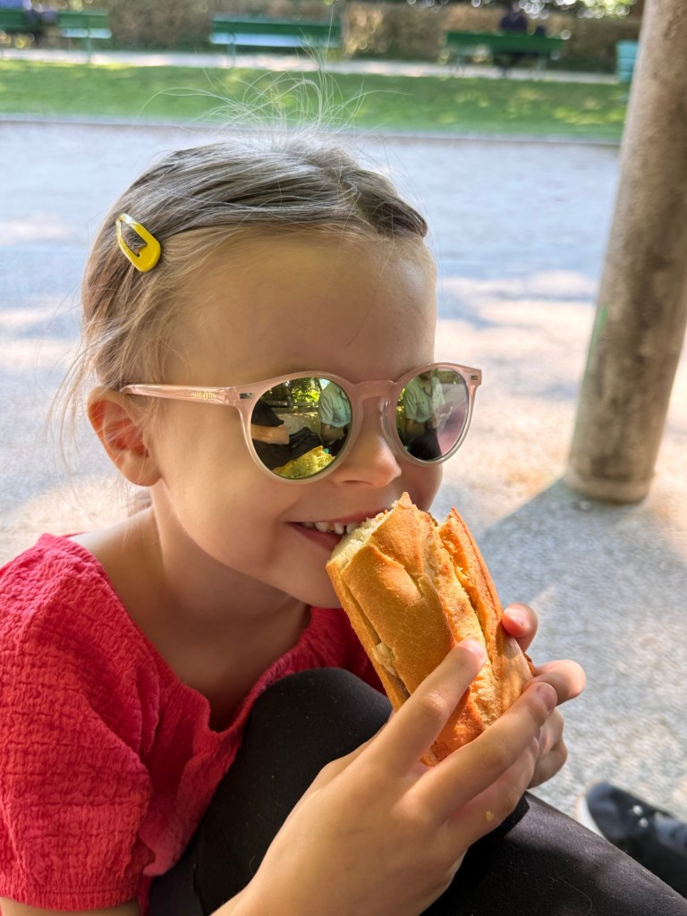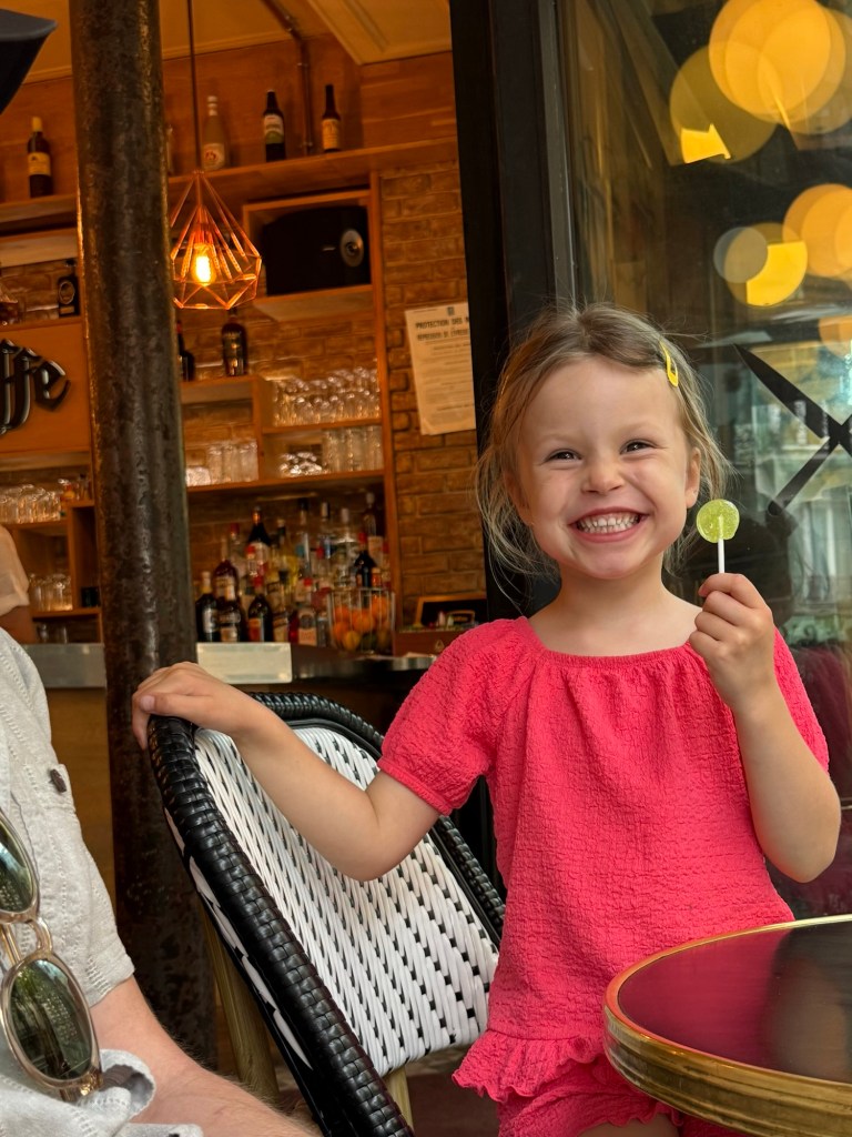 It was a hot day today and everyone was still in good spirits so we decided to stop at a classic Parisian cafe for a spritz. The waiter gave Millie a lollipop which made her day. The way to this girl’s heart is sugar.
