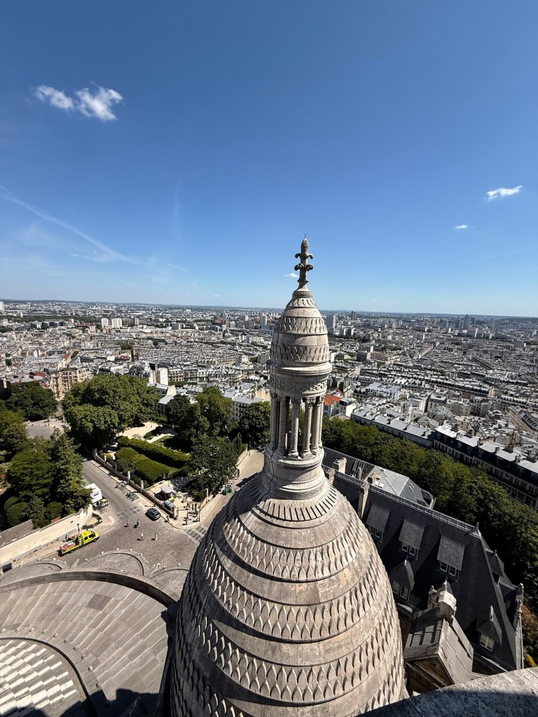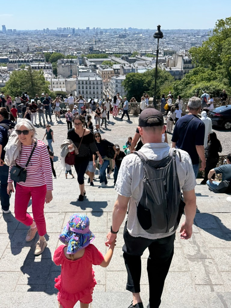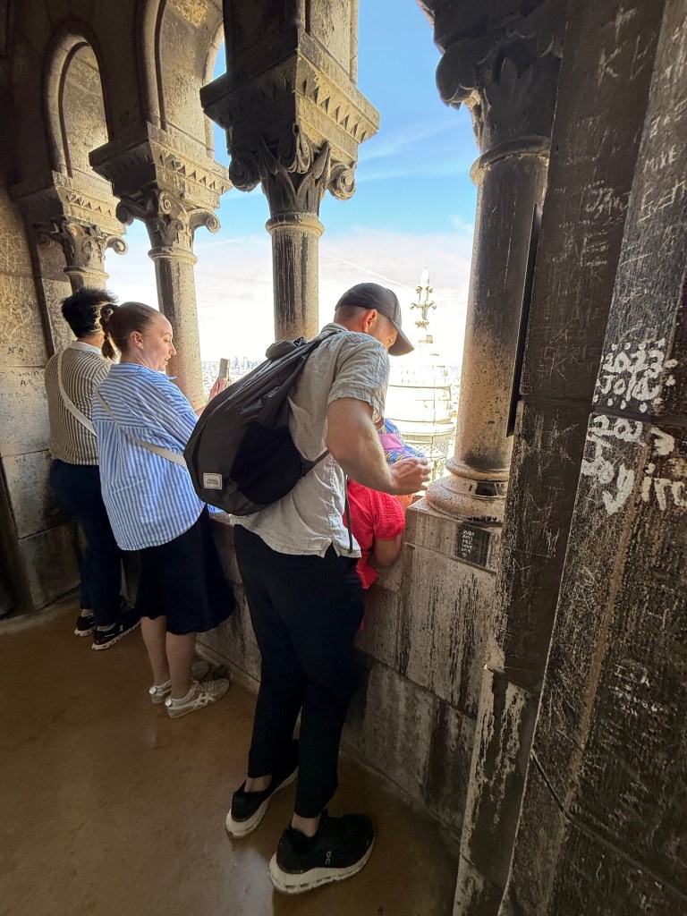 We then spent more money to go to the tower of the church. I know Paris doesn’t really have a reputation for being a cheap city but dang, they really charge you for everything! We walked the 600 steps up to the heavens to see the view. Millie was excited to see the Eiffel Tower in the distance.