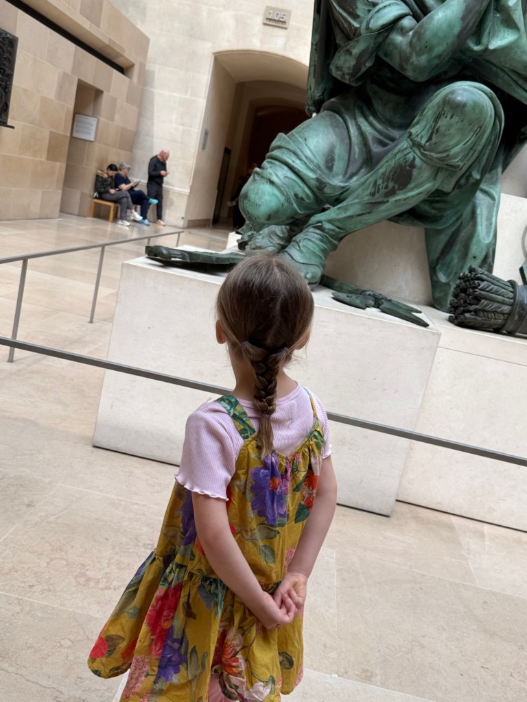 Anyway, the day started on a low. She wanted to bring Judy out for the day’s activity, we didn’t allow it, and it turned into an all-out fit. A full on kicking, screaming fit in our small Airbnb. We can hear the neighbors talking at a normal volume so I can only imagine what they thought. Eventually we left, listening to “I want Judy” whines on repeat from the moment we left to when we got on the metro, the whole ride, and into the walk on the other end. We waited outside the Louvre for it to cease before going in.