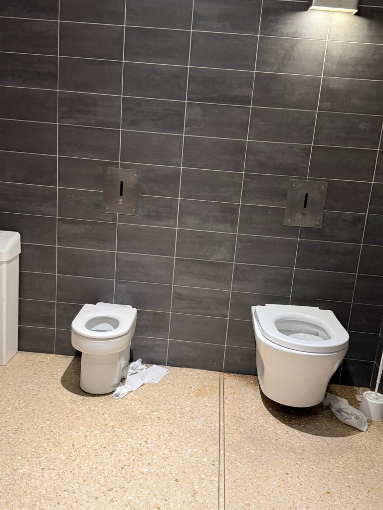 Quick subject change. They had a great family bathroom situation with two side by side toilets, one for a parent and one for a kid. This is better than the Mona Lisa as far as I’m concerned.