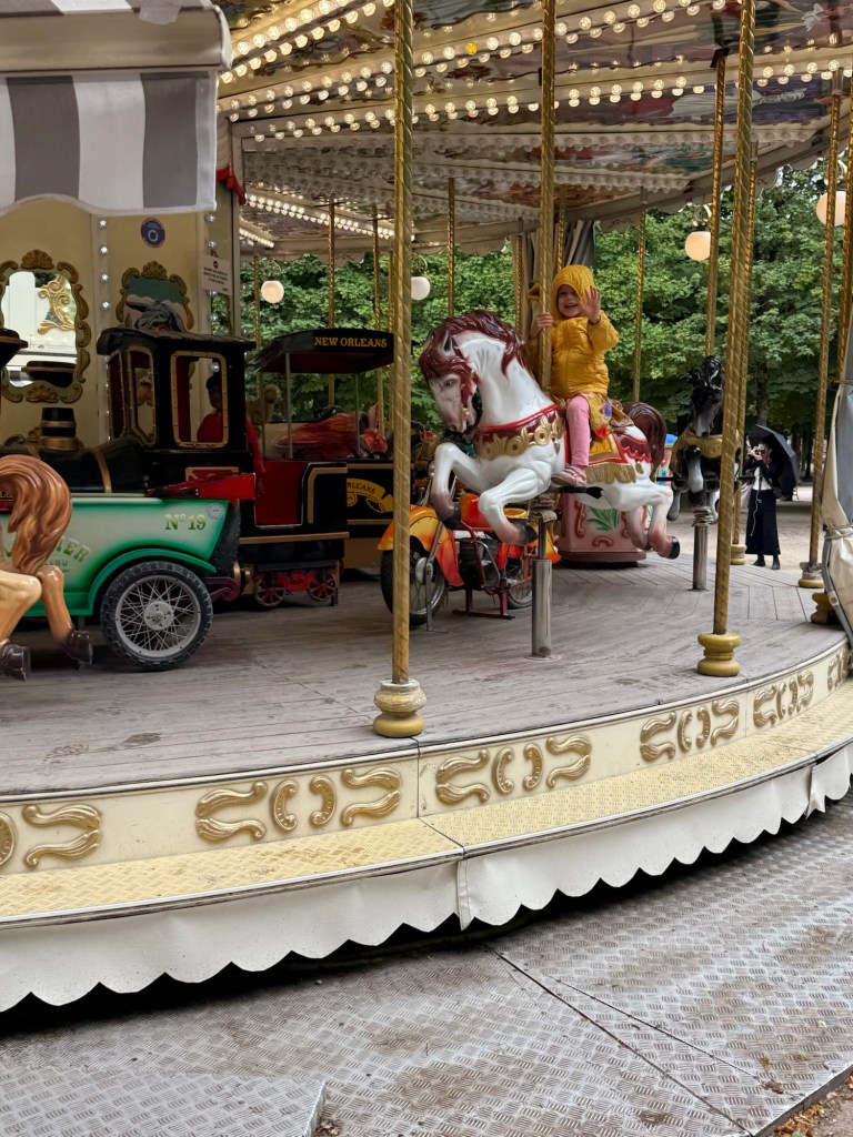 We promised a carousel ride for good behavior in the museum and Millie held up her side of the bargain, so we followed through. It’s hard to believe that just a couple of weeks ago she had never heard of a carousel, and now she has been on 4? 5?