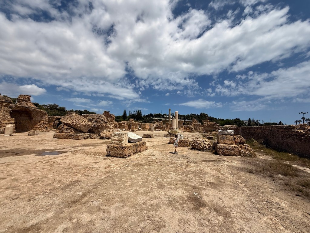 From here they called us a taxi to take us to the ruins in Carthage. These Roman Baths were quite a contrast from the Roman Baths we visited in England. Those cost $70 to enter and were packed with visitors, all of whom had an audio tour. This morning we strolled in and it felt like we were the only ones there. We were able to walk and explore wherever we wanted. At one point Nick looked around and found pieces of Roman pottery and mosaic scatted below our feet. There wasn’t a sign in sight so we had to use our imagination and some quick googling to understand what we were seeing.