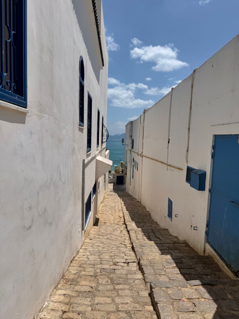 We took a short drive to the pretty town of Sidi Bou Said. All the buildings are white and blue, matching the sea and the clouds beyond it. Very Mediterranean.