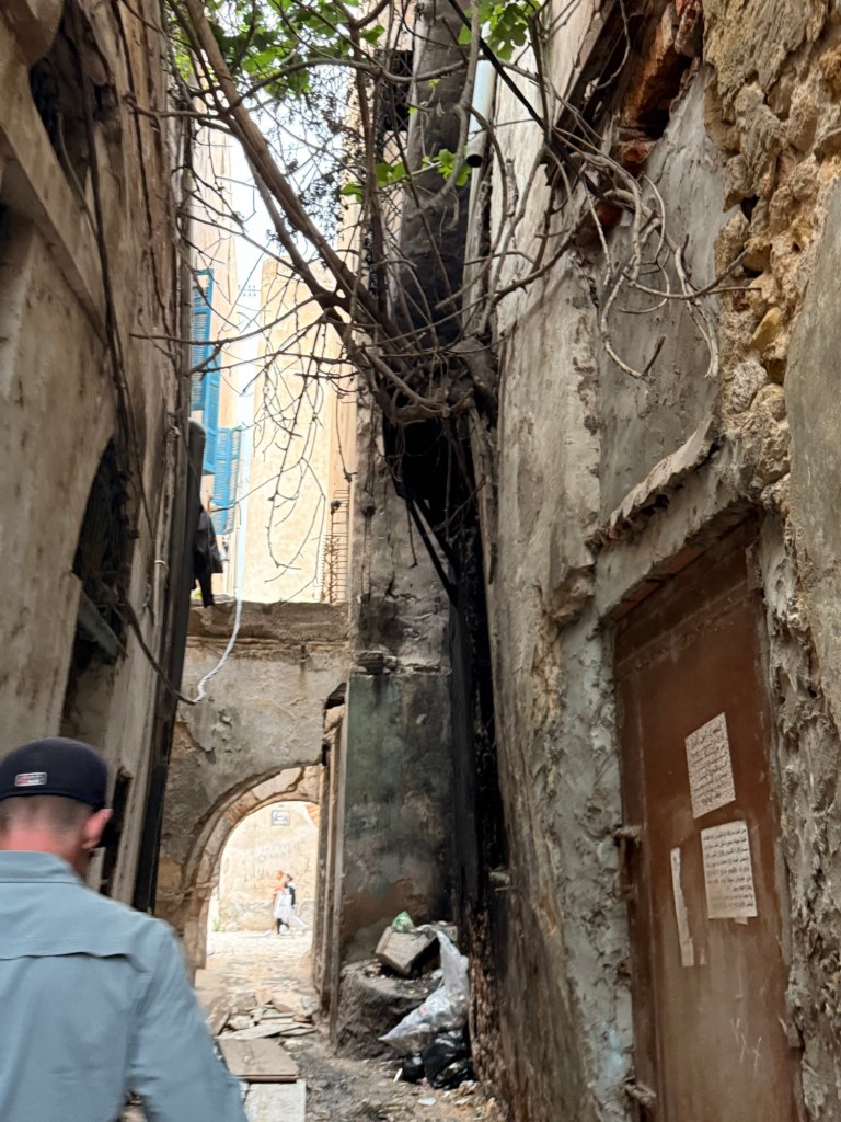 We walked back a different way and saw the rougher side of the Medina. At one point an old man came up to us and told us to turn around and not walk through this way, which we did. Tunis seems to have equal parts beauty and grime, often intermeshed. The people seem similar. We have been treated with great kindness but also Millie noticed tonight “why are all these men fighting?”. There is a lot of shouting.
