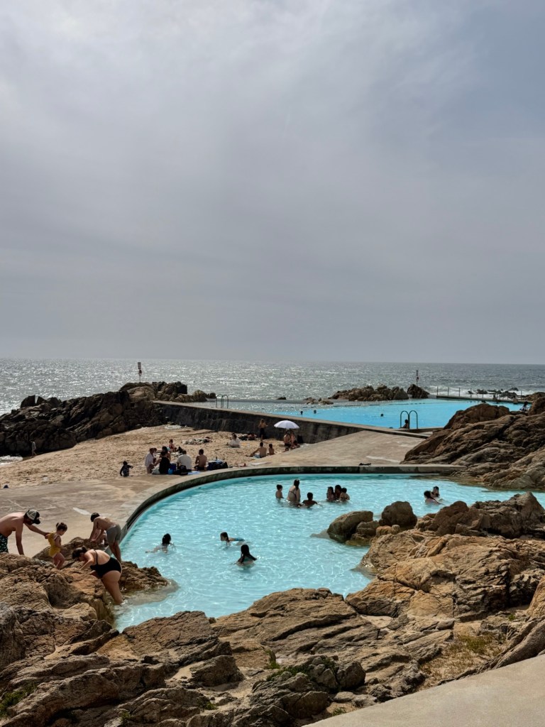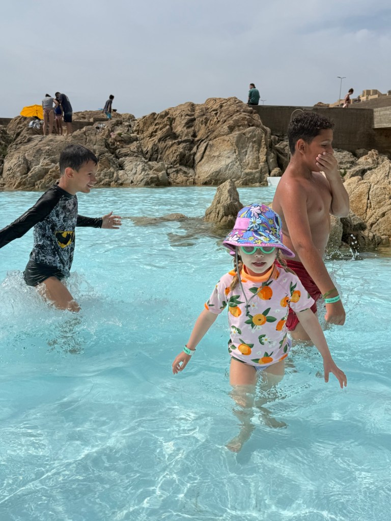 We took an Uber to Piscina das Marés which are pools and a beach in one. Millie happily played in the sand building castles with our friends’ 10-year-old. The water was cold but it didn’t stop them from trying.