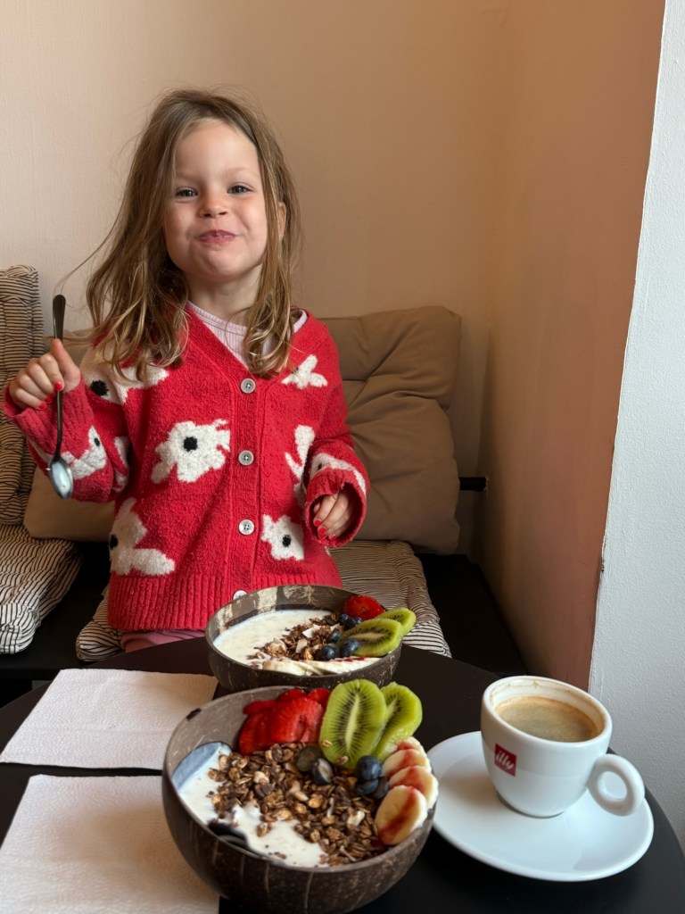 Millie and I went out to an early breakfast this morning and let Nick sleep in. We had fancy yogurt bowls which felt more California than Latvia.