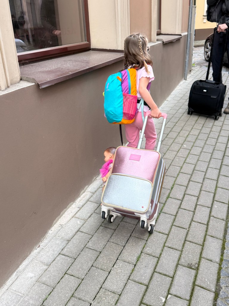 We came back and packed up. We have it down to a science now. I can close my eyes and walk the memory palace of my bag. There are a few things I haven’t used that I’m debating leaving somewhere, like my sports bra and yoga pants. We are working on getting Millie to be in charge of all her things.