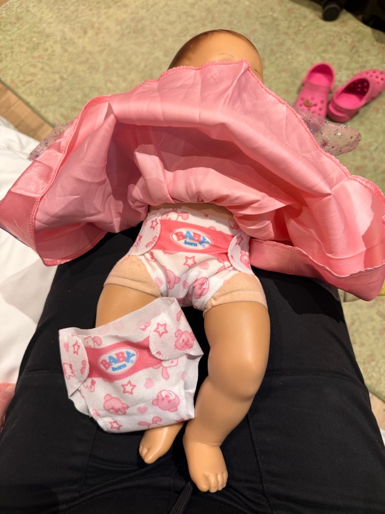 I wasn’t sure if the diapers would fit so I had to try them on her. 20 years ago Nick and I were newly in love and getting high in an Amsterdam coffee shop. Now we are in an Amsterdam hotel room unboxing tiny plastic high heels and putting fake diapers on a babydoll. Life is, as they say, a highway.