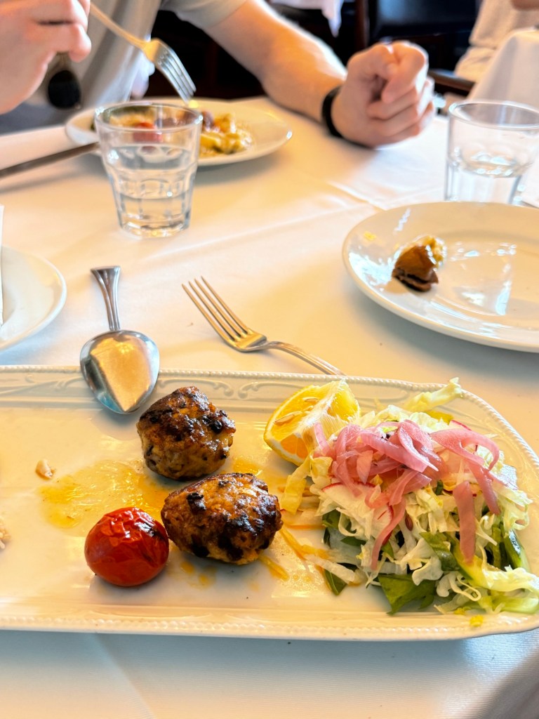 We were still full from our baklava but ordered two plates to share: fish kofte and the sultan’s lamb stew. They were so good. Millie loved the lamb, which is one of the only meats she will eat.