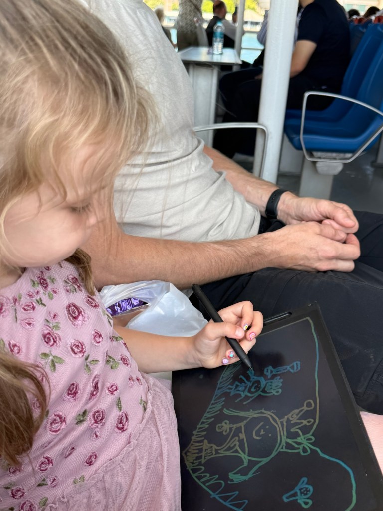Millie had been requesting going on a boat all morning so we found a cheap Bosphorus cruise and hopped on. Once we were on she couldn’t have cared less about being on a boat. She drew most of the time and Nick and I couldn’t hear any of the guide’s explanation, but we were happy to be sitting in the shade and cruising. We saw a few big tankers crossing through and Nick googled them to learn where they were from, what they were carrying, and where they were headed. I love the internet.