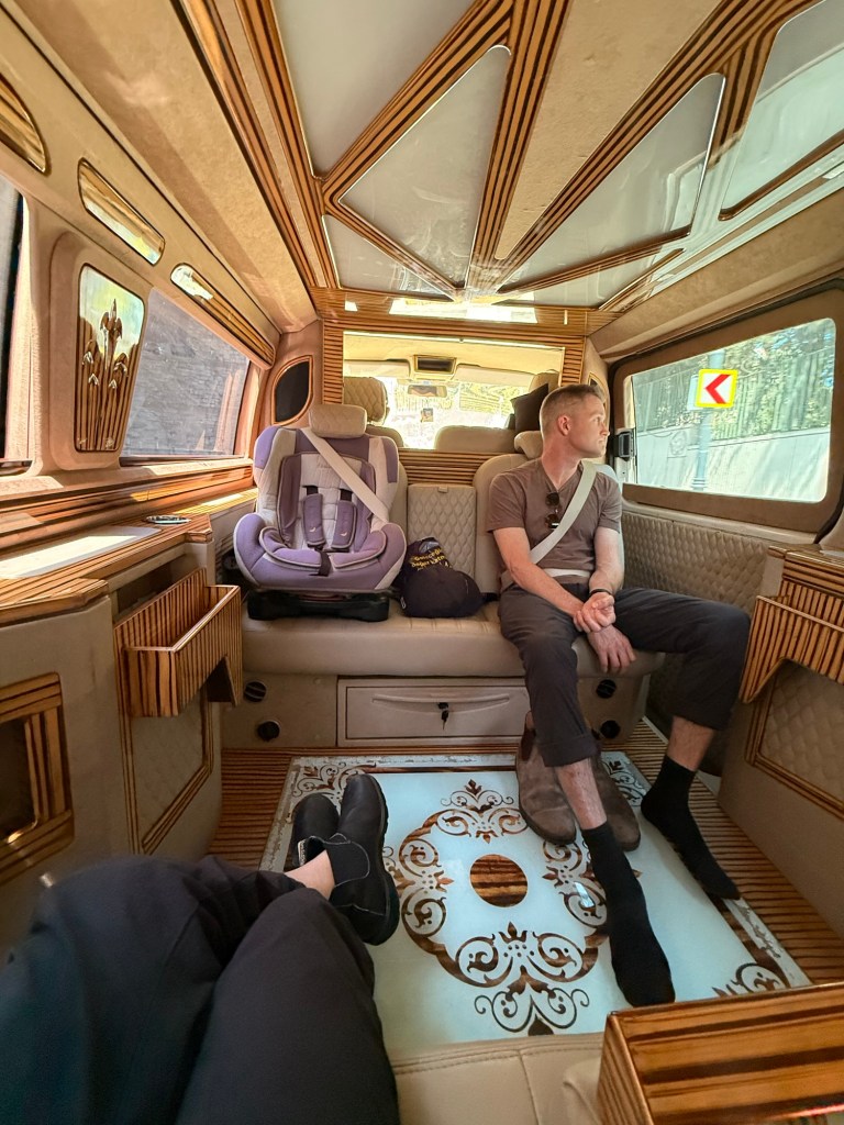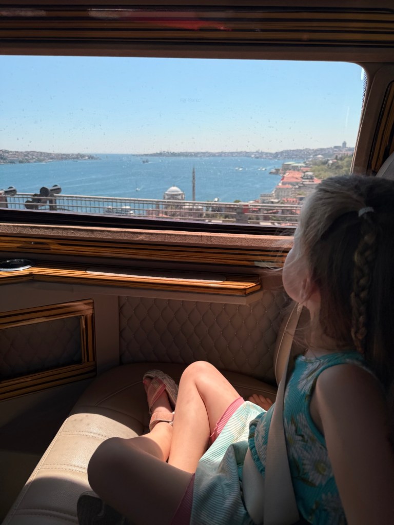 The van-taxi had real shaggin’ wagon meets sultan vibes. The airport is over an hour from central Istanbul so Millie slept for half the ride. Nick and I suffered in our boots since it was so hot. On travel days we have to wear them because they don’t fit in our bags; a flaw in our packing strategy.