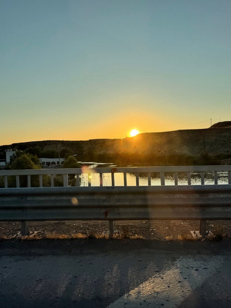 And she was right! We picked up our rental car and drove the 45 minutes to our hotel. The landscapes reminded us of West Texas: expansive, long shadows, sandstone valleys, and pockets of green alongside the river.