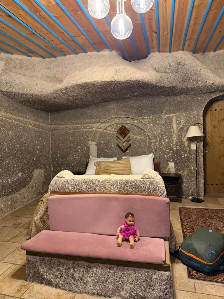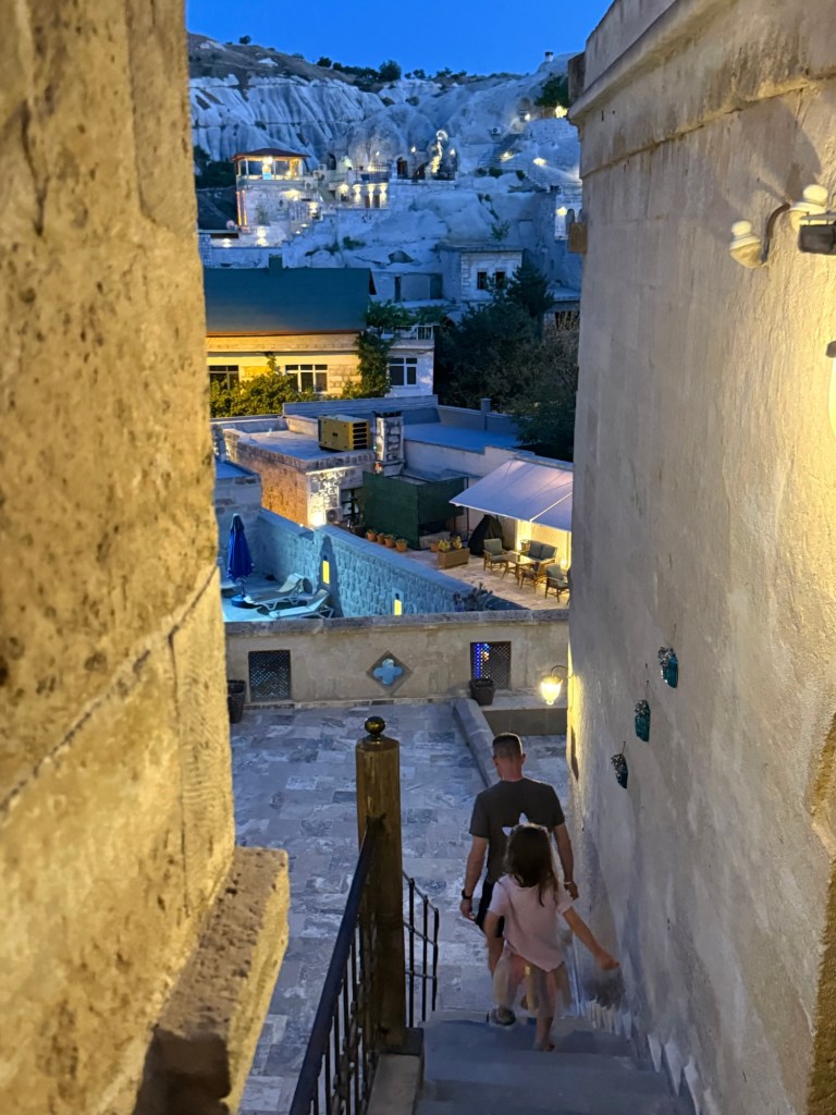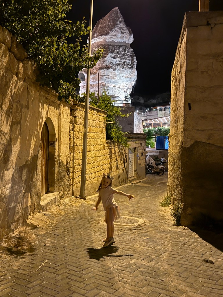 We walked through the small streets and had a great meal of lamb shank, salad with lots of mint, meat pastries, and a mezze platter with yogurts and hummus and spicy dips. We got back to our cave hotel for a very late bedtime. Nick is reading to Millie now as I finish this post.