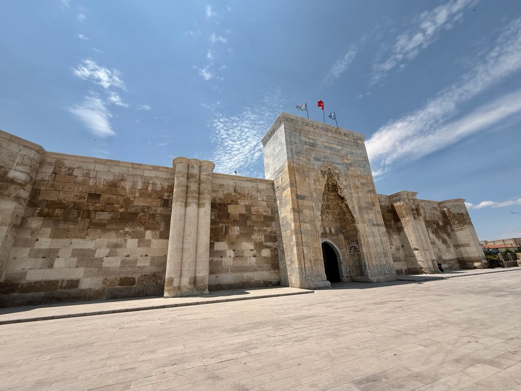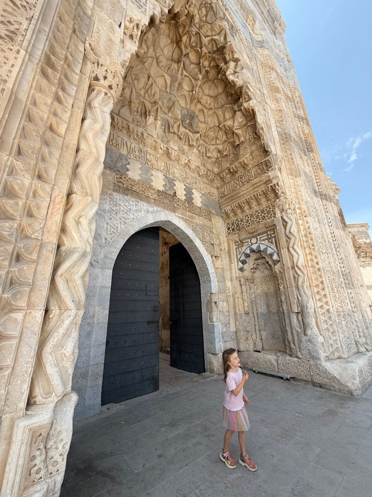 Our first stop was Sultan Han Caravanserai, which was a rest stop along the Silk Road where caravans of traders could bathe, rest, and resupply. We explained this to Millie and she said “so like when we drive to Dallas and we always stop at Buccee’s?” Yes, exactly like that. This is where people used the bathroom, got snacks, and fueled up their camels 700 years ago.