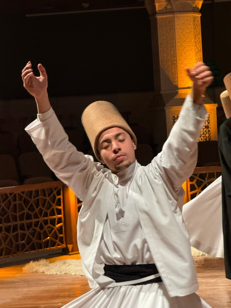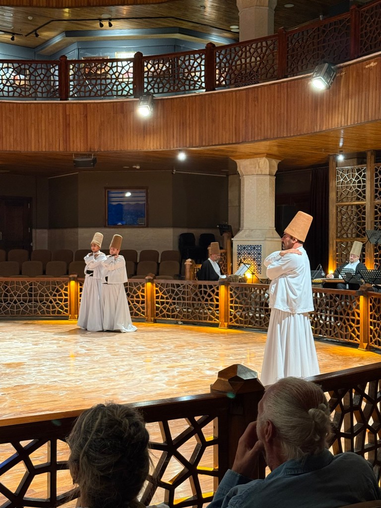 Then it was time for the dervishes. Previously I had thought this was a performative dance but quickly learned it’s more of a spiritual ceremony. A sheikh comes out and every sound and movement has religious significance. Everything felt very serious.