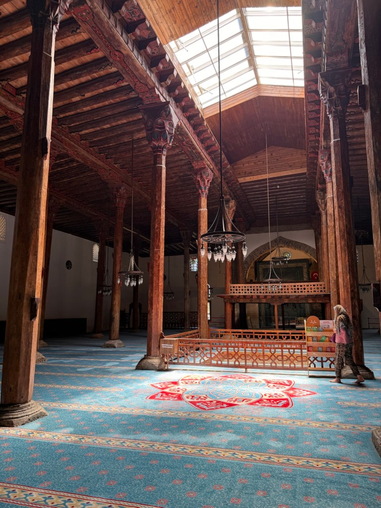This mosque was built in the same time period as the caravanserai we saw yesterday, so it was interesting to compare them. The inside had old wooden columns which I had never seen before.