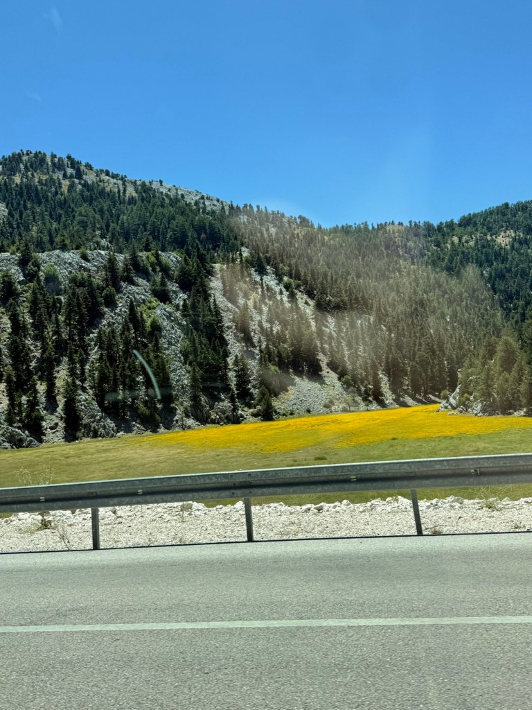 Today was an even longer day of driving than yesterday, and Nick planned a couple of stops to break it up. The journey took us through very diverse landscapes. The day started hilly and dry. Our first was about 1.5 hours in to see the mosque in Beyşehir.