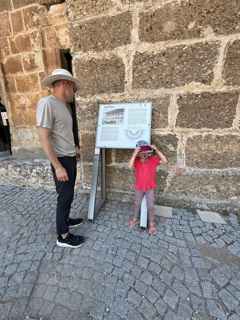 We got to our next stop: Aspendos Theatre, a (surprise surprise) Roman-built amphitheater. As we got out of the car we were hit with HEAT. This part of the country is significantly warmer than where we came from. Millie groaned at the very sight of an informational placard, knowing Nick would not pass it until reading every word.