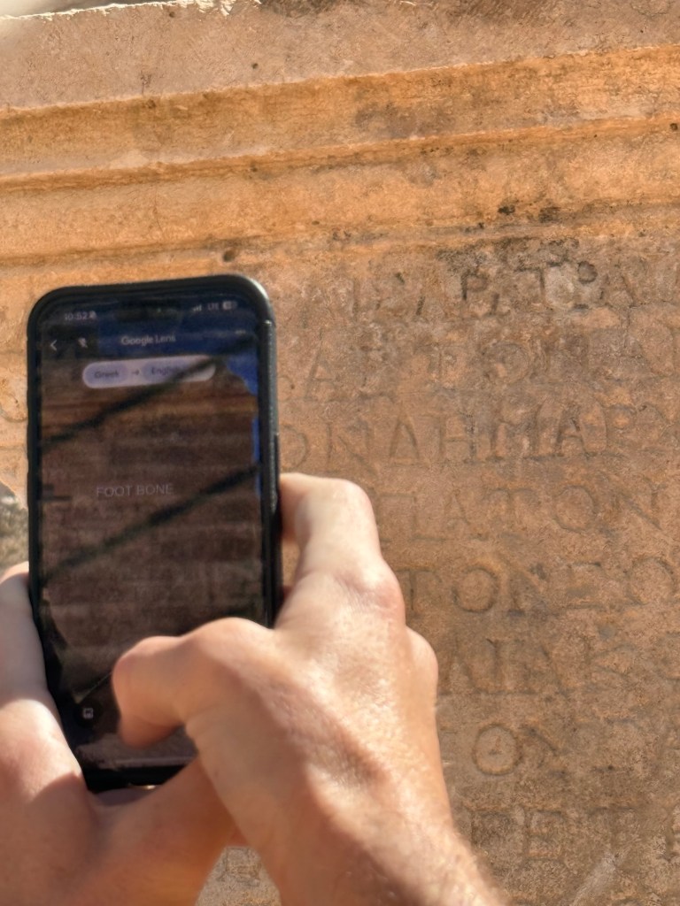 Since we were already at the ruins we did a quick walkthrough, but it was already very hot. Nick has realized that he can use Google translate to read some of the carvings. Who knows if it’s accurate since they are so old, but even seeing a few of the words come through feels like magic. Could the people who carved this ever have predicted this technology? This one made us laugh.