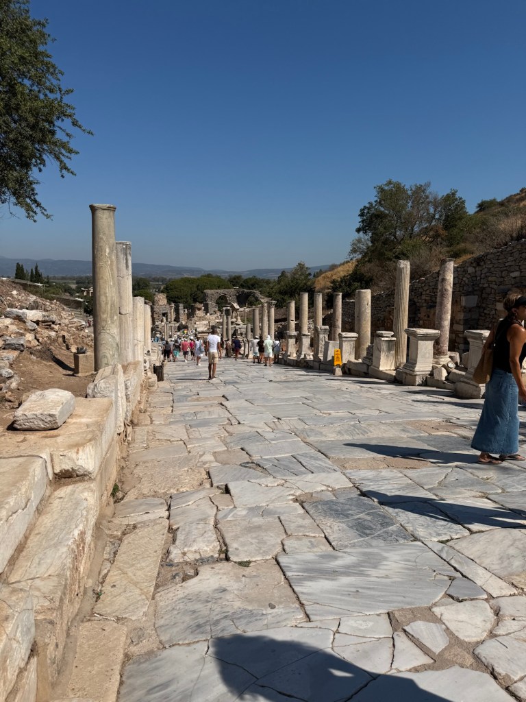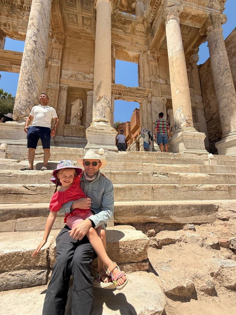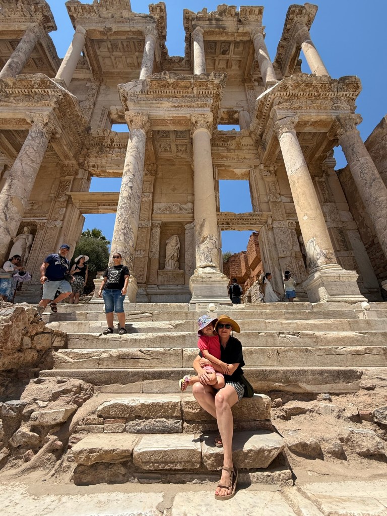 We managed to finish seeing the sights before heatstroke kicked in and rested at a cafe inside. I snuck off to go to “the Ephesus experience” solo since kids under 8 weren’t allowed. It was just as bizarre as the Hagia Sophia one, but this one had a smoke machine.
