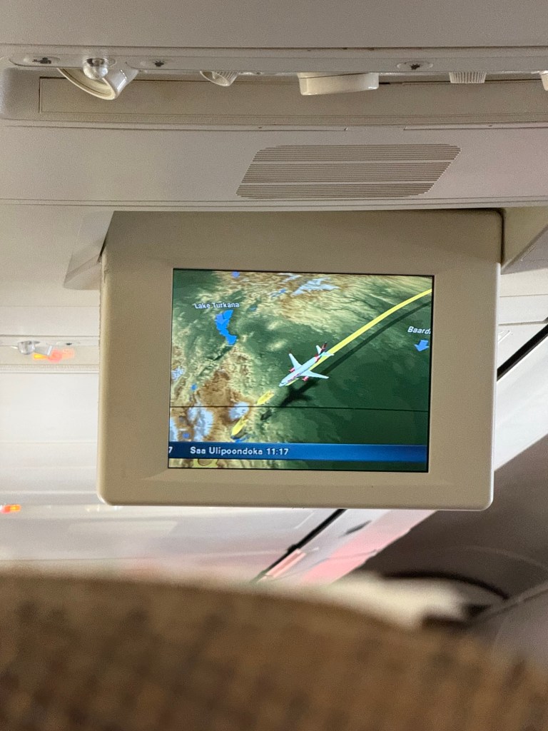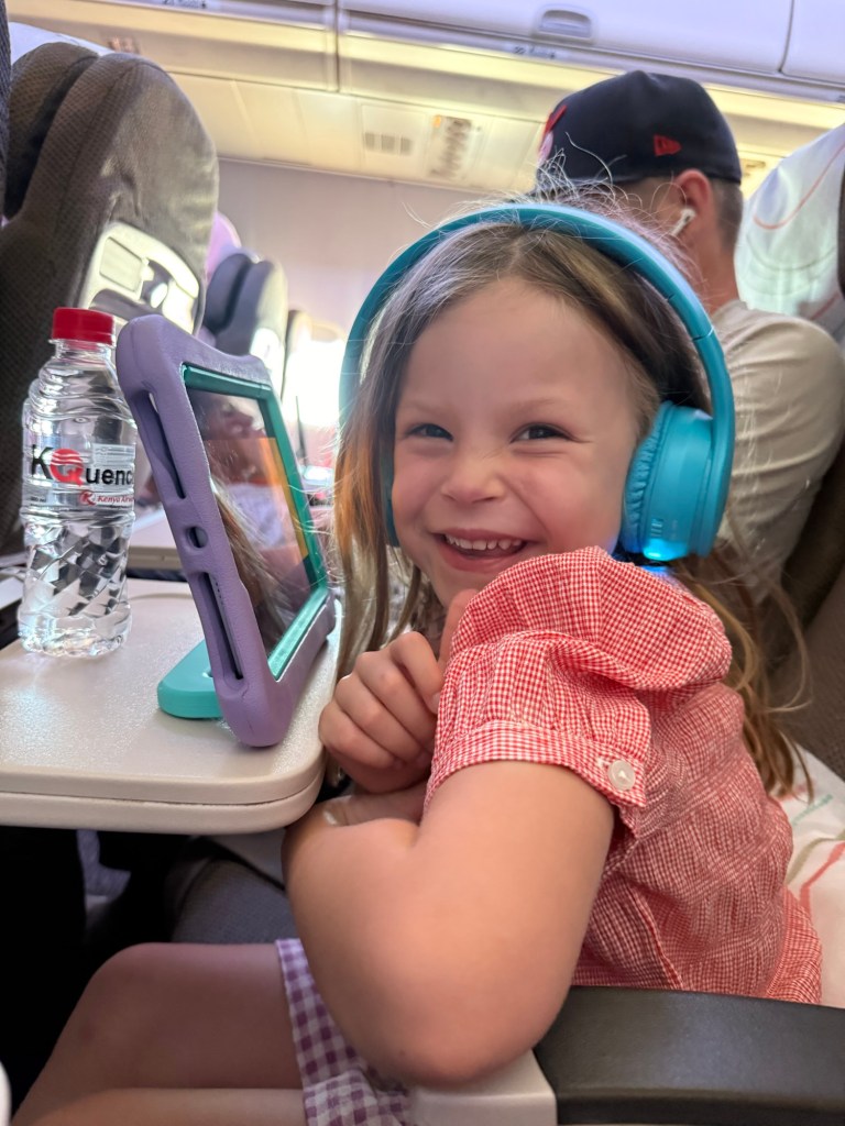 Our Kenya Airways flight felt like traveling back to 2001. Fold down TVs, an actual hot meal even though the flight was 4 hours, free alcohol, and a flight attendant taking orders for the Skymall catalog. Our resident iPad addict was happy to have unlimited screen time after not watching anything for a while.