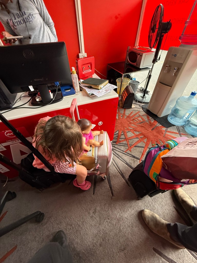 Once we got through passport control we walked to the rental car area. Usually we would book something ahead of time, but this time we didn’t in case we didn’t make it through. Again this worked in our favor and we got one for slightly less than what the aggregate websites had them listed as. Millie is getting better at waiting during boring stuff like this, and sat and played with Judy. Nick is back to driving on the left, which required very little adjustment after our month driving around England.