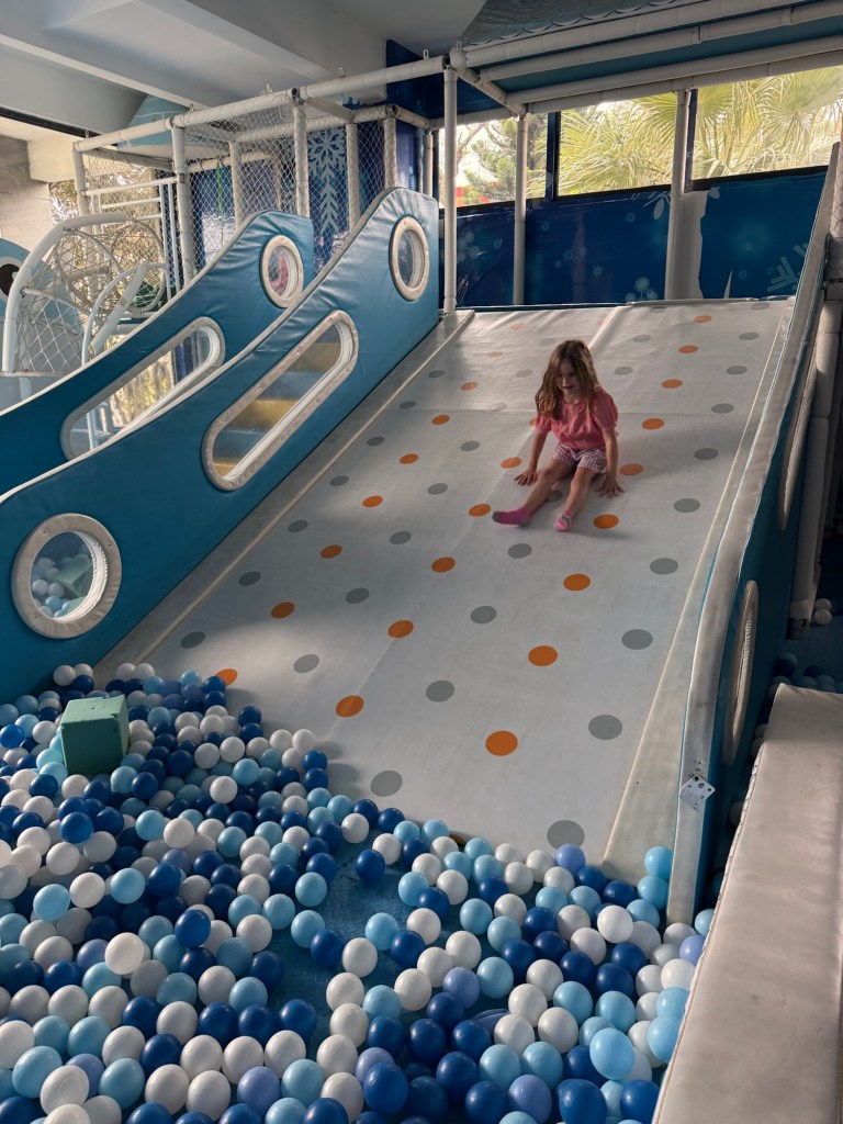 We made our way to our Airbnb and checked in. There is a kids play area in the building where Millie got some energy out. You can’t tell by the photos but it was packed with about 12 very loud kids. Millie loved it.