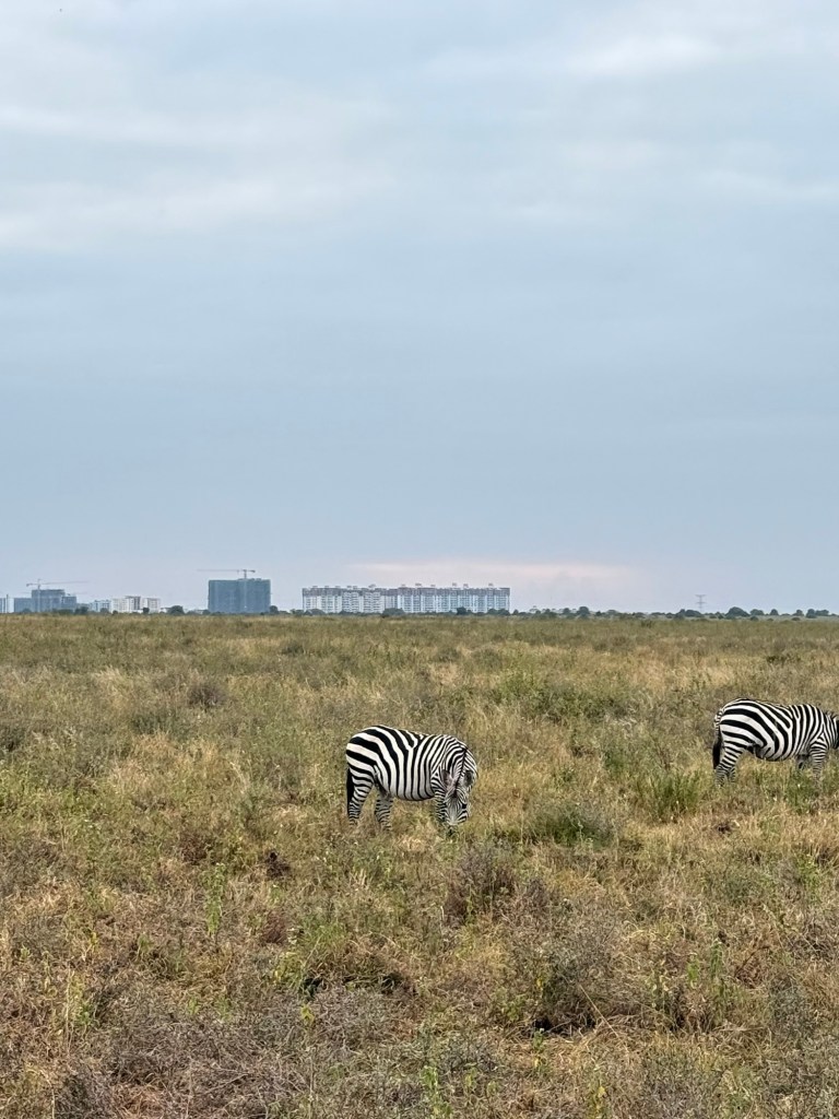 Our driver picked up one more passenger and then after about 20 minutes we were entering the park. The national park borders the center of the city which is a strange but very cool experience. One minute you’re in morning rush hour traffic, and the next you’re driving beside lions. At some points inside the park we could see the skyline beyond the animals.