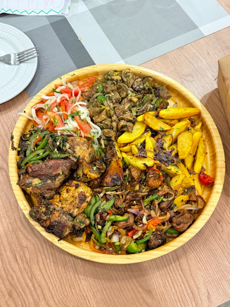 We ordered dinner from the restaurant and they delivered this huge feast to our apartment. It was very, very good. Enough food for all of us, plus leftovers, for under $20.