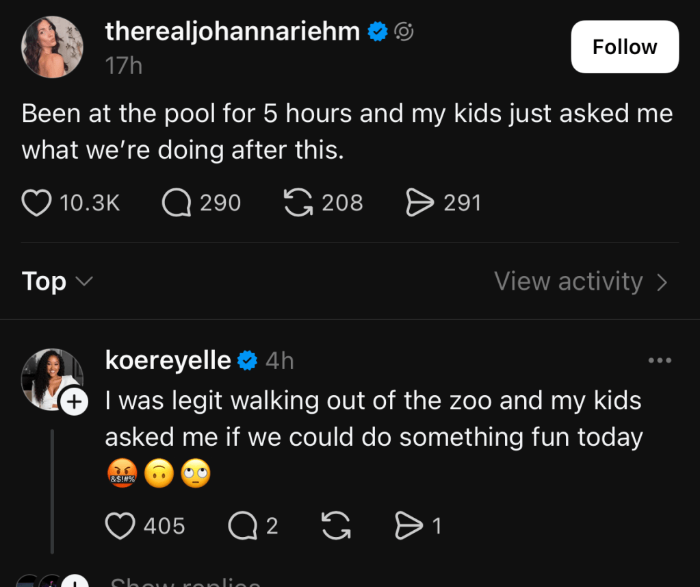 Towards the end of our personal episode of Planet Earth, Millie kept asking what we were going to do after. I thought of this tweet I had seen and sent Nick about a week ago. Kids are all the same.