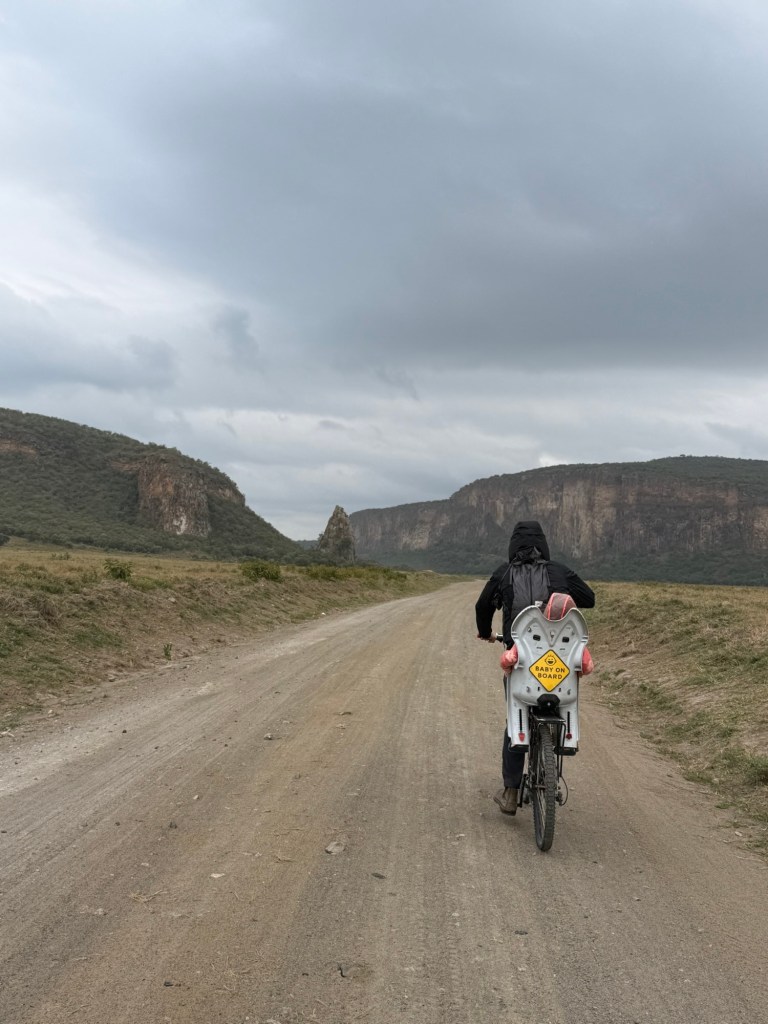 Hell’s Gate National Park has no human-predators, so it’s one of the rare parks in Kenya that you can walk or bike through safely. Our first order of business was to rent bikes, one with a seat big enough for Millie.