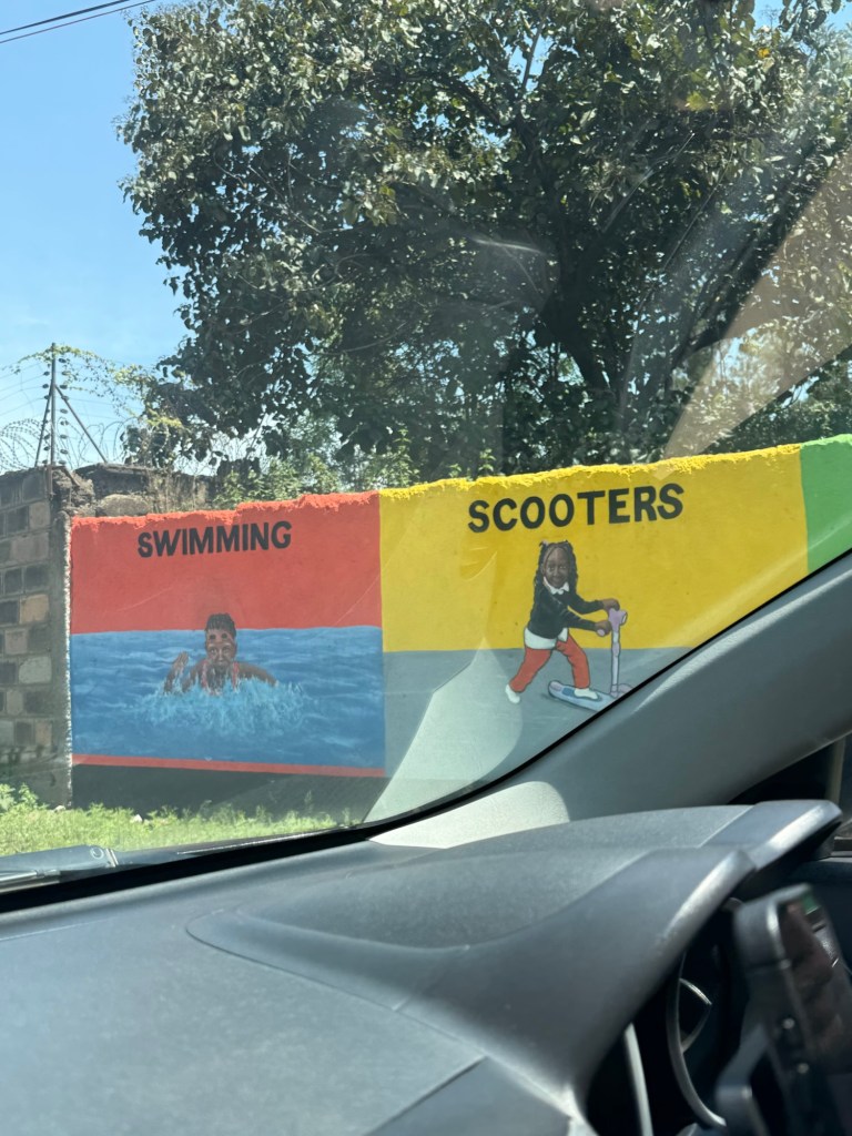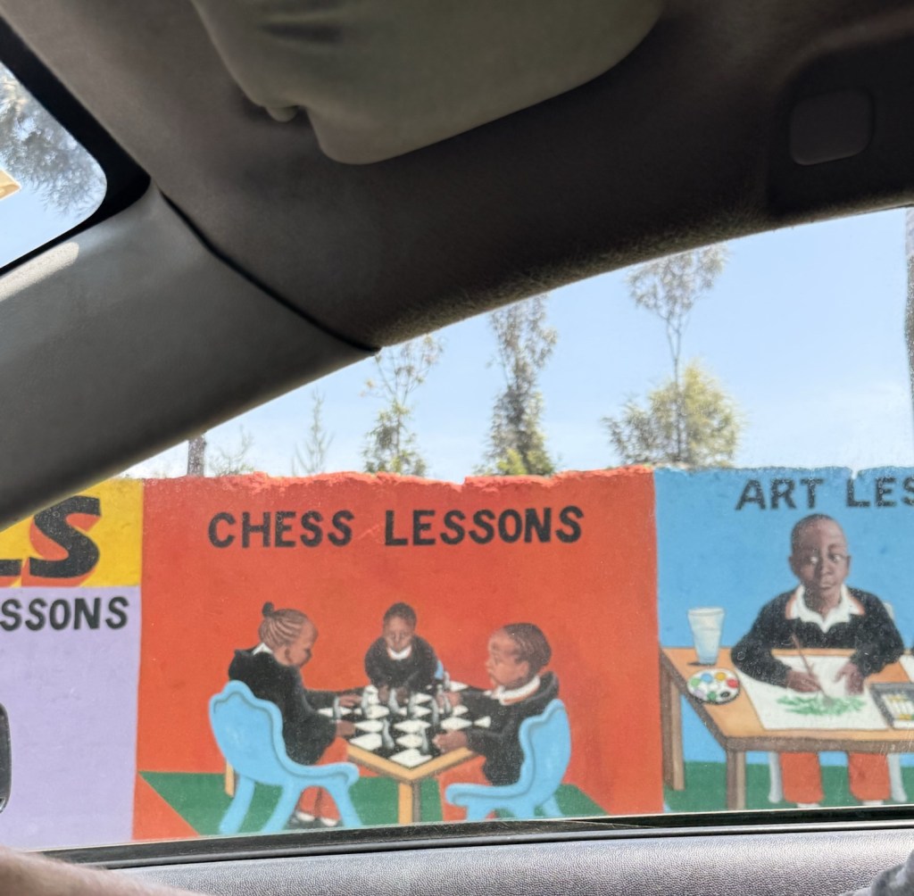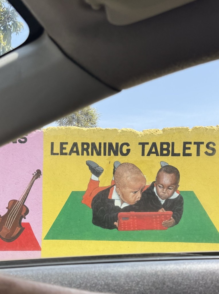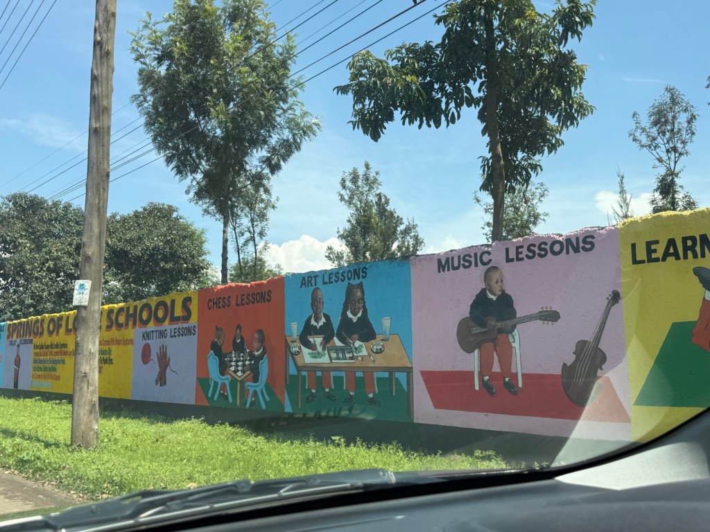 On our way we drove past this school. I loved this mural along the whole wall.