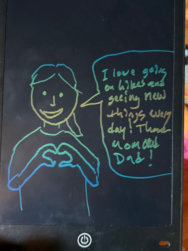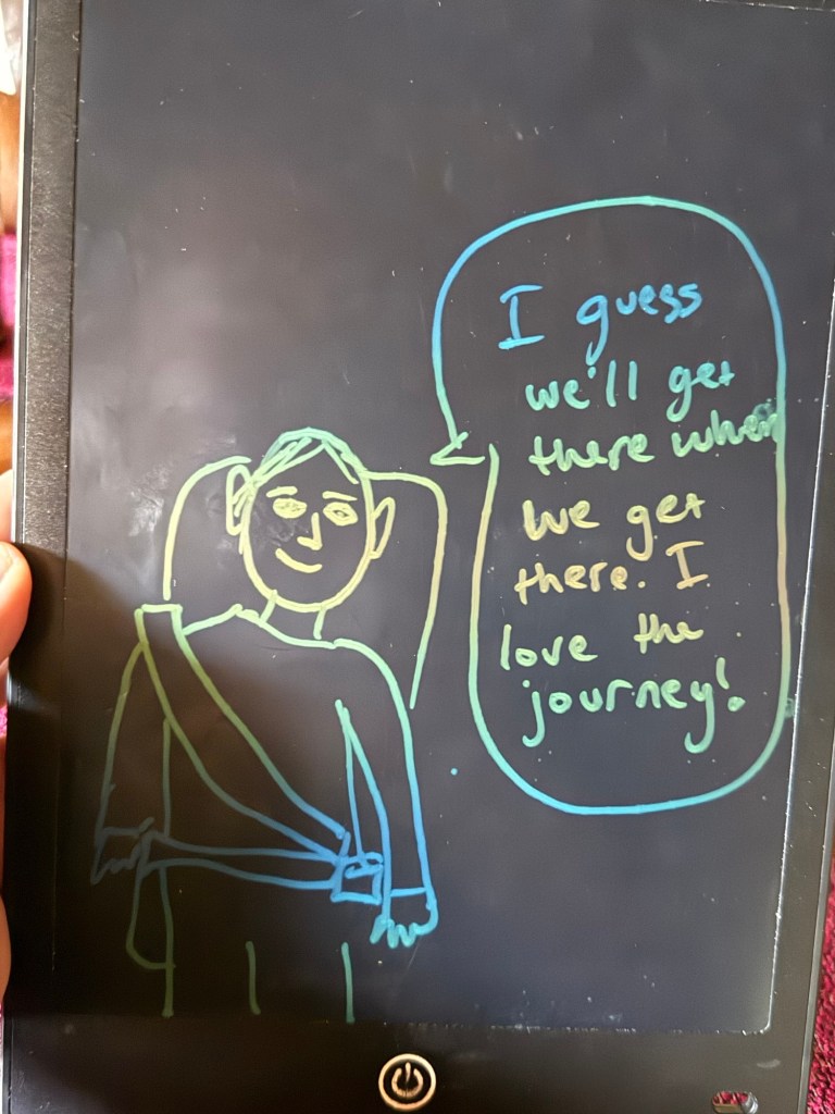 She wanted to take turns drawing various scenarios. After we noticed that hers were mostly complaints, Nick and I cracked ourselves up taking turns drawing pretend happy scenarios she could find herself in.