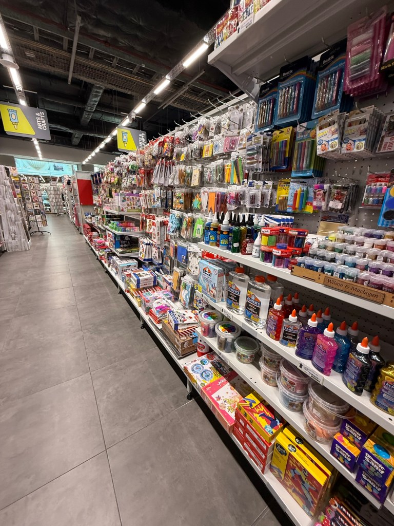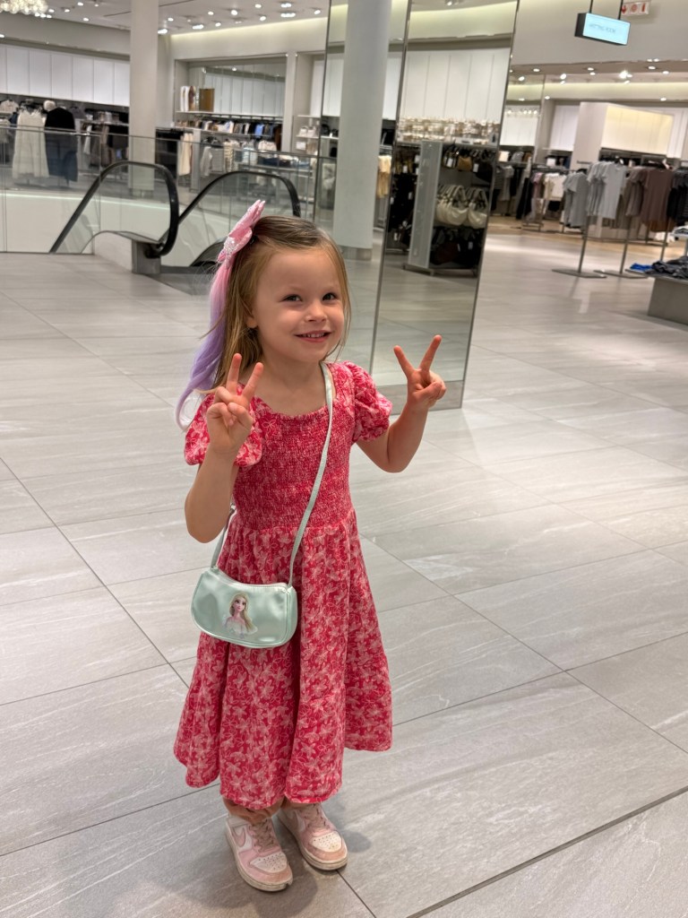 We spent a couple of hours browsing and managed to resist the gravitational pull of capitalism trying to trick us into thinking our lives would be better with new stuff. We left with some new paper & art supplies, one pair of pants for Millie, an Elsa purse, and a clip with fake pink hair. Just the essentials.