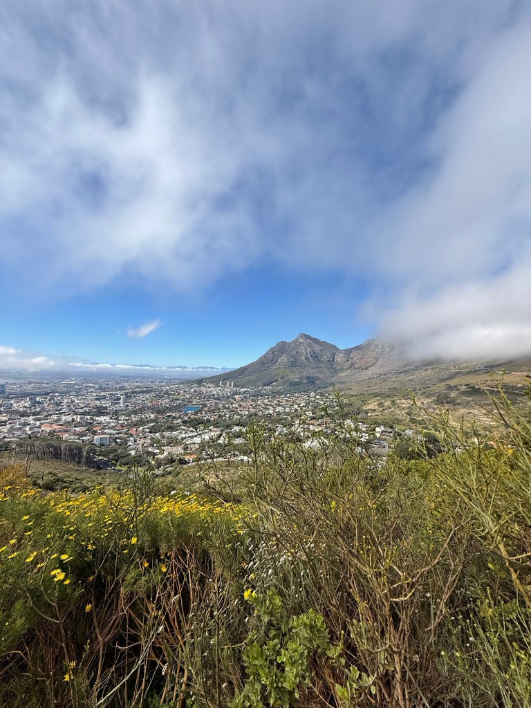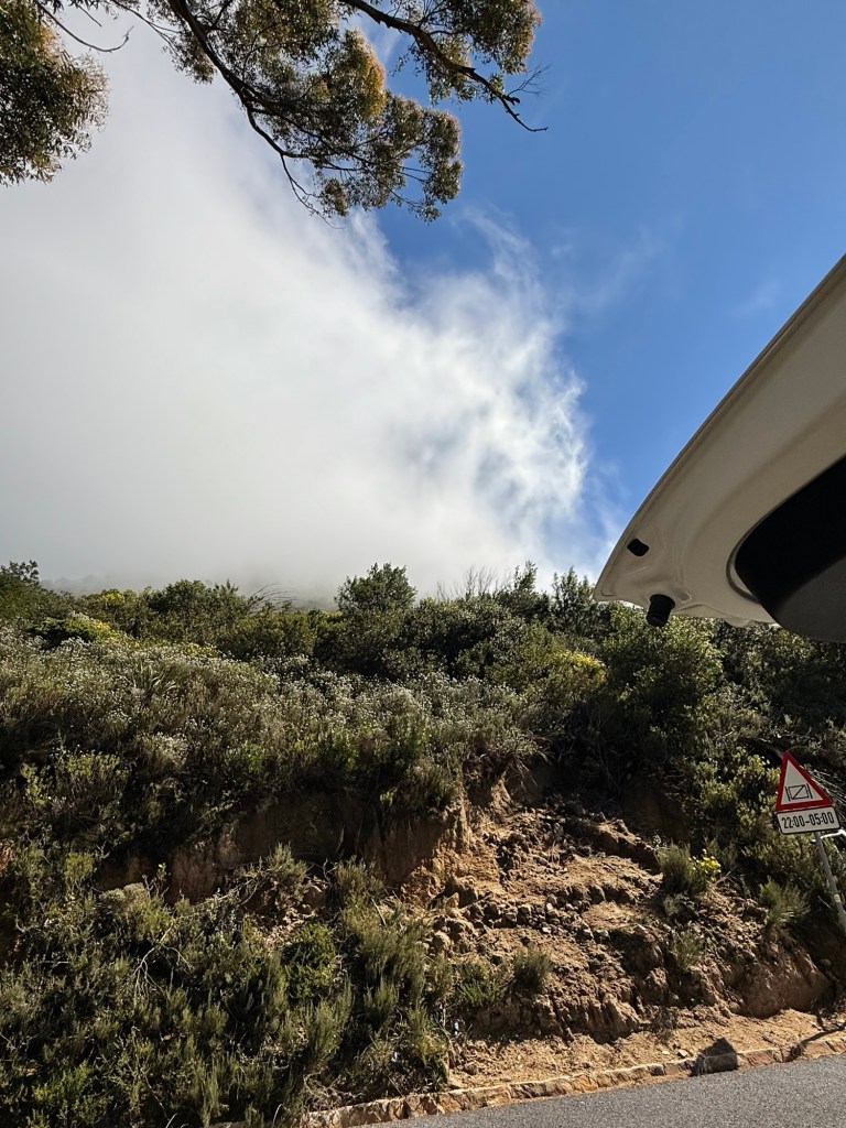 As we drove back into central Cape Town, the mountains were clear and we decided to attempt the Lion’s Head hike. As we were parking and getting out of the car, a cloud approached. I’m not joking when I say that it got covered in about two minutes. I took these two photos 30 seconds apart.