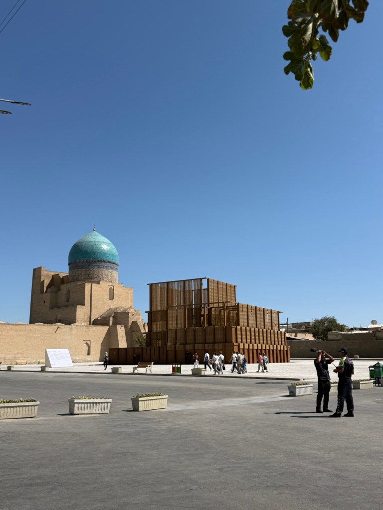 We walked through town to the Ark of Bukhara. Everything was bustling to get ready for the opening of the biennale this evening. Installations were being built, buildings were blocked off, and lots of people were wearing lanyards of different colors depending on their role: artist, security, press, volunteer, etc.