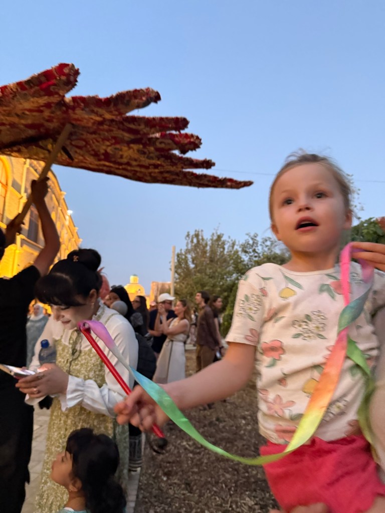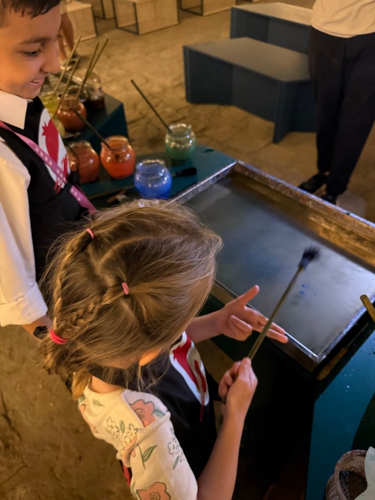 We watched a family of artists create ebru marbling prints and Millie whispered to us “I really want to try doing that”. Eventually they offered her a turn and it made her whole day. She was grinning ear to ear and took it so seriously.