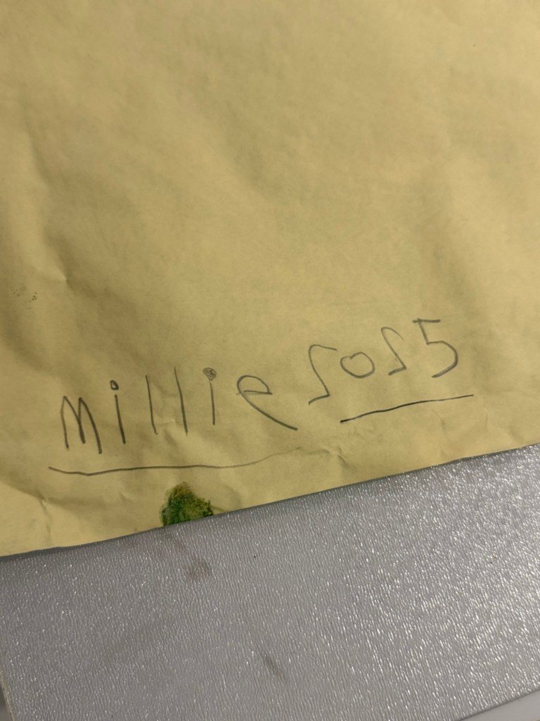She walked all the way home holding it up so strangers around us could see her work, and then insisted on signing the back of it. She really wants to be an artist. And a mom.