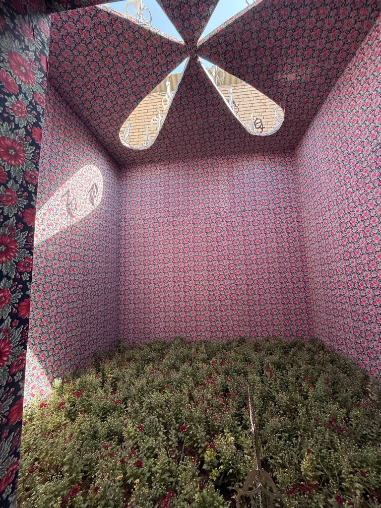 Loved the shadows of the sculptures on the roof reflecting on the wall, and the growing floor. This was part of a larger installation about the patterned fabrics and sewing of Uzbek women.
