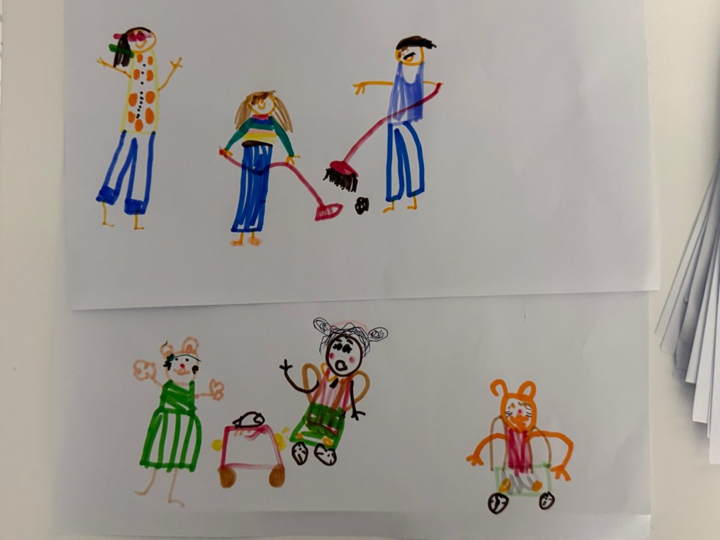 I voyaged out solo this morning to get breakfast for everyone. Usually at Airbnbs we are prepared with some oatmeal or cereal, but we weren’t today. We had a long, lazy morning of drawing, playing cards, and playing hide and seek. Millie was noticeably tired from her late night and curled up on the couch.