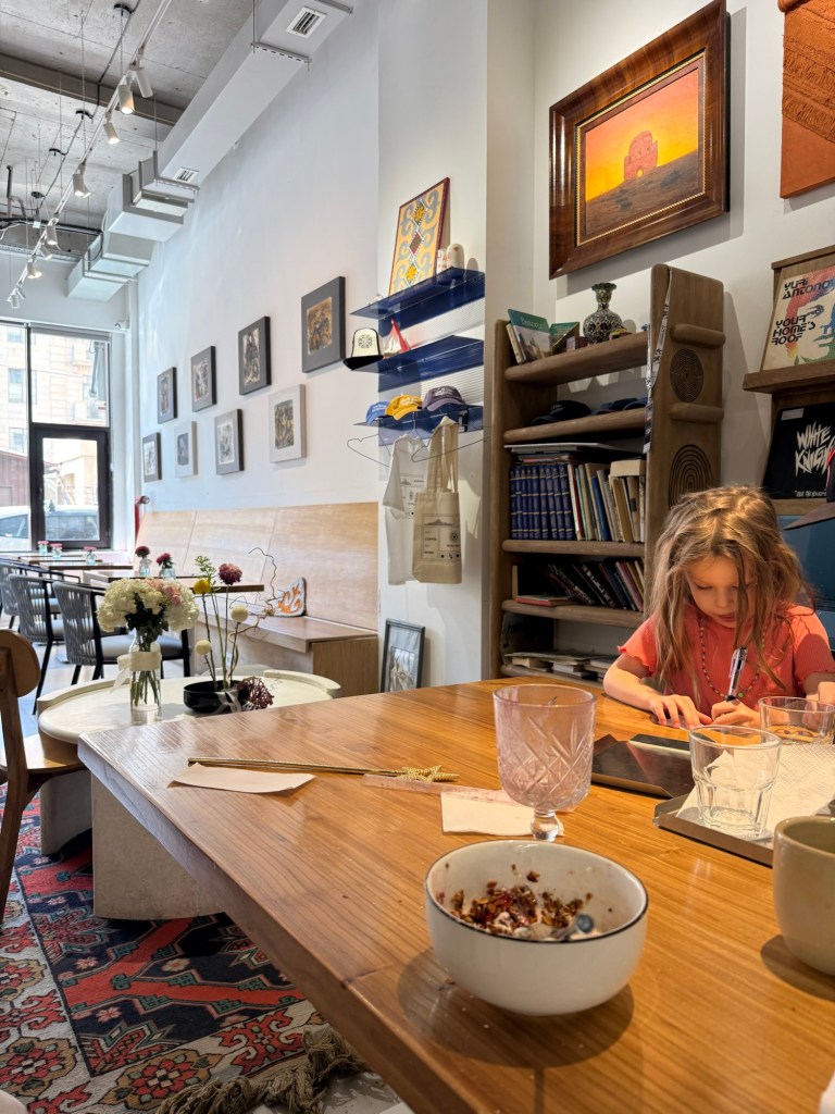 So we headed out to find a somewhere with decent breakfast options. We found a hip little coffee shop with excellent coffee. We’ve had a lot of okay coffee but this was the first very good cup since maybe Amsterdam. I had a French omelette, Nick had a Mexican-spiced grain bowl, and Millie had yogurt and granola. We didn’t expect Kyrgyzstan to have such hip places, but between last night’s craft beer bar and this place, Bishkek feels like Brooklyn.
