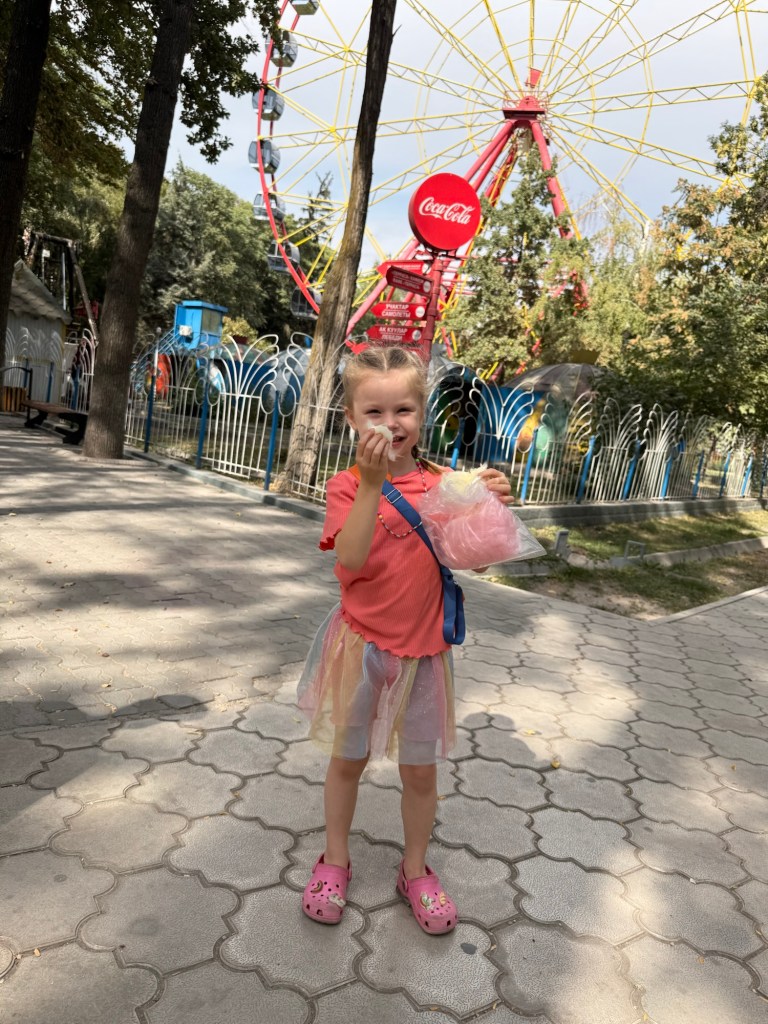 At the entrance of the park there was a lady selling cotton candy. Millie immediately asked if she could get some as her treat for completing her chart. She has never had any before and has been wanting desperately to try it. She has decided she likes this even more than ice cream.