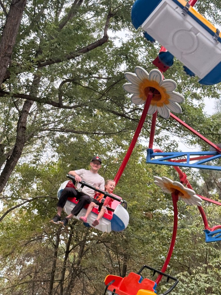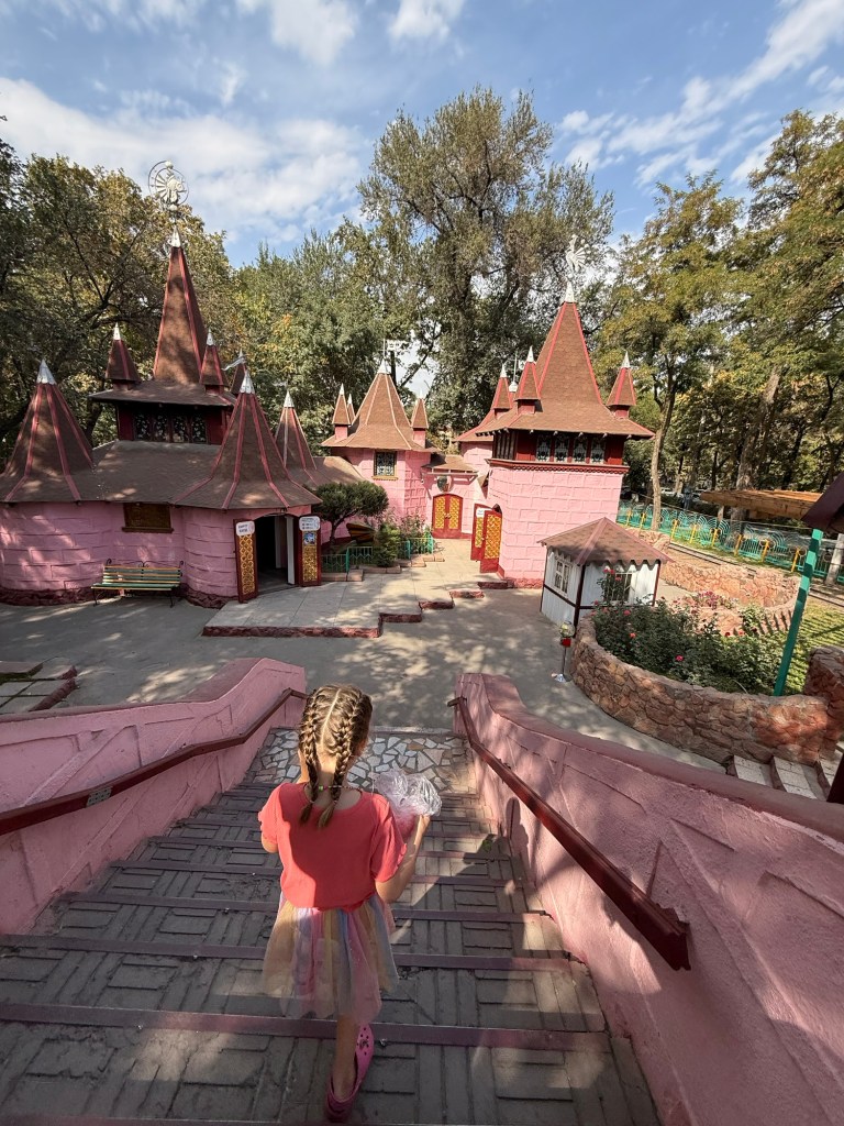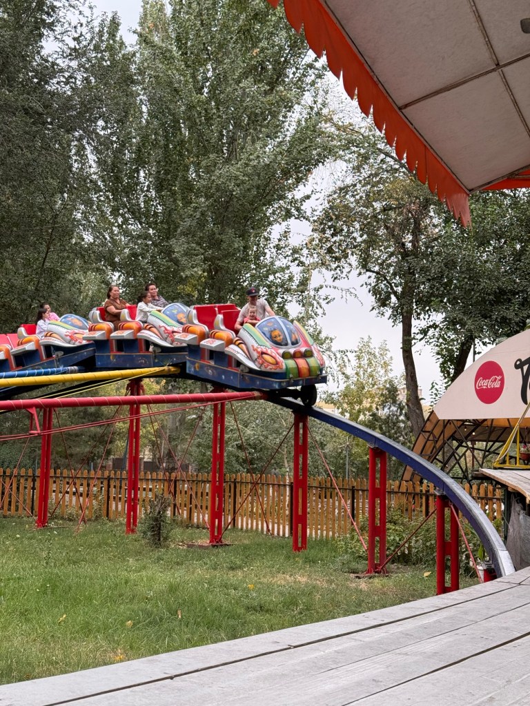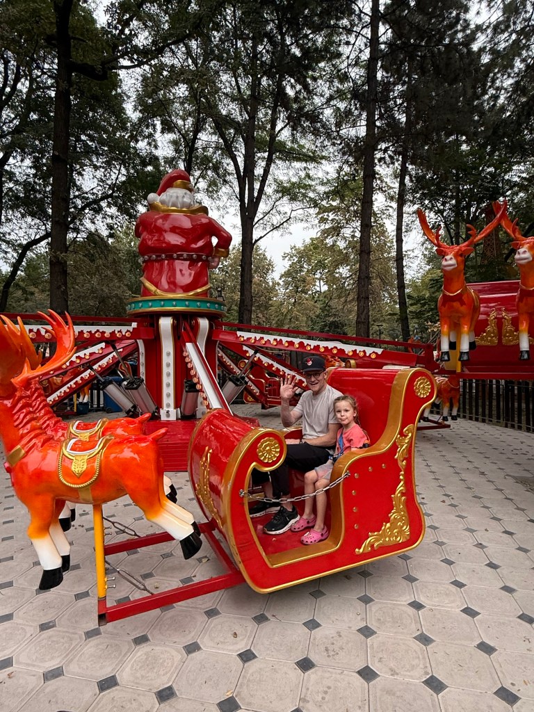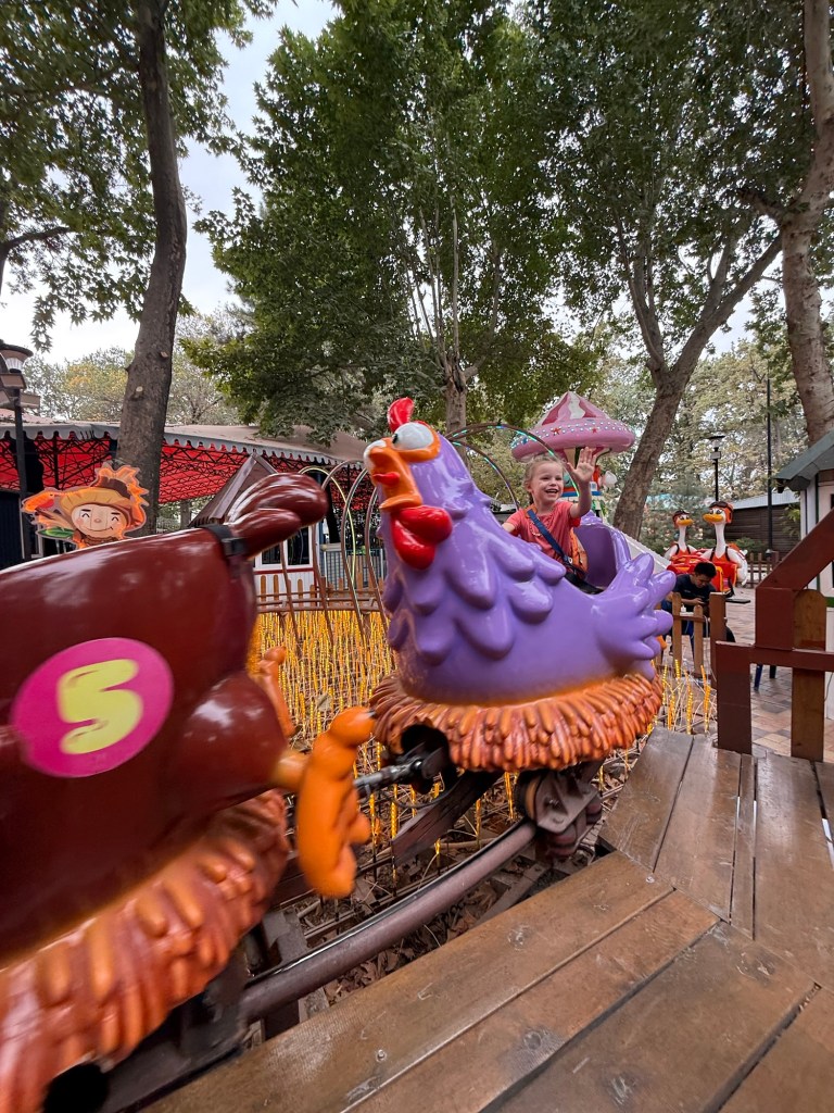 The park was like a permanent fairground, with all sorts of rides. Unlike some other versions of this we’ve been to, these rides were cheap, less than a dollar each. We said yes to every ride she wanted to try and she had a blast. Nick went with her on the faster ones and she just shriek laughed the whole time. We also did the Ferris wheel, fun house, and more.
