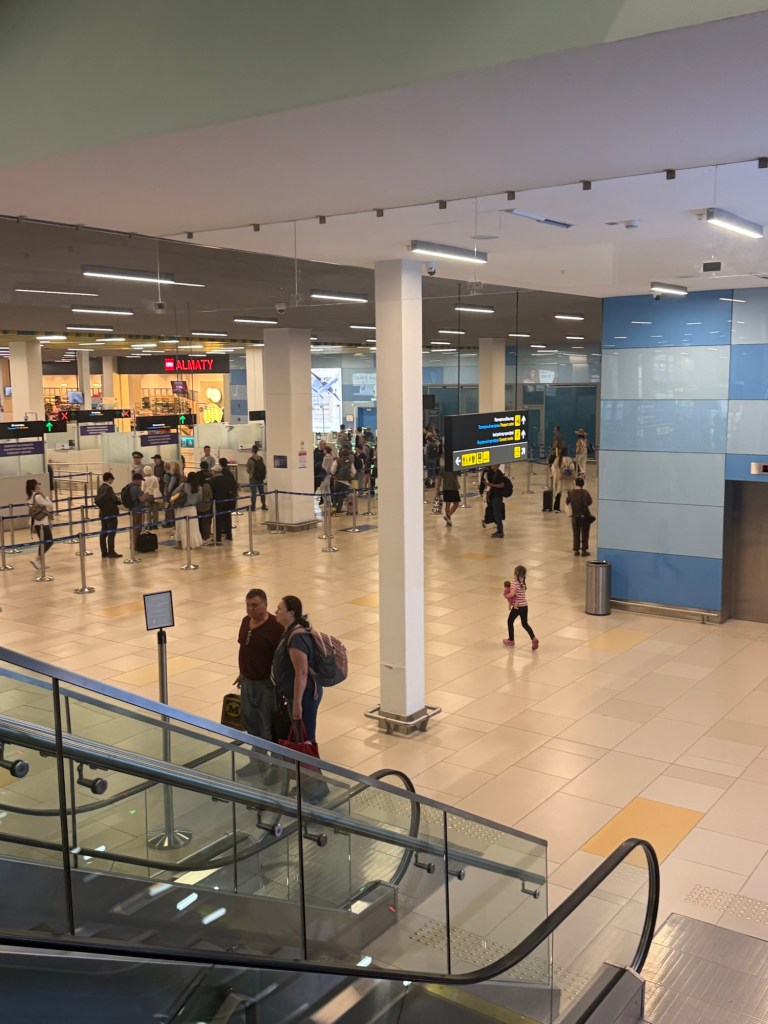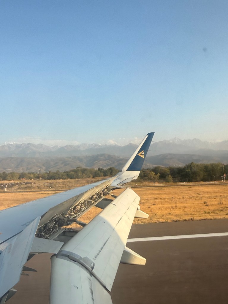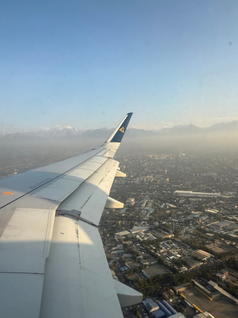 The flight was very short, about 45 minutes. I always get the window seat and love getting the first look of a place as we are coming in to land. Almaty is huge and alongside a mountain range. It was beautiful.